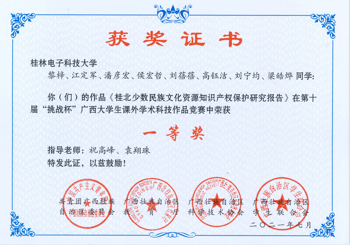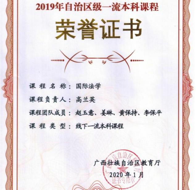 图 5 第一届广西本科高校哲学社会科学优秀教师“特色示范课堂”二等奖 回眸奋进路成绩斐然映初心,展望新征程踔厉奋发向未来 纵观学院十余年发展历程,正是在学校的正确领导和高度重视下,学院从自力更生、边缘挣扎求存的创立阶段逐步进入了外联合作、不断壮大的新时期,并能主动为学校发展和社会服务贡献力量,在教学和科研工作各方面取得了显著的成绩。学院将总结经验、增强信心、汇聚力量、明确方向,紧紧围绕“十四五”发展规划,团结全院师生,持续深化落实校院两级管理改革,强化部门间沟通合作,把握学校理工特色优势和时代机遇、开拓进取,砥砺前行,在推动法律与科技相融合,强化知识产权运用等方面,创新人才培养模式,以科学研究服务地方法治和知识产权建设,为学校早日建设成电子信息特色鲜明的国内高水平大学作出新的贡献! |