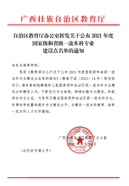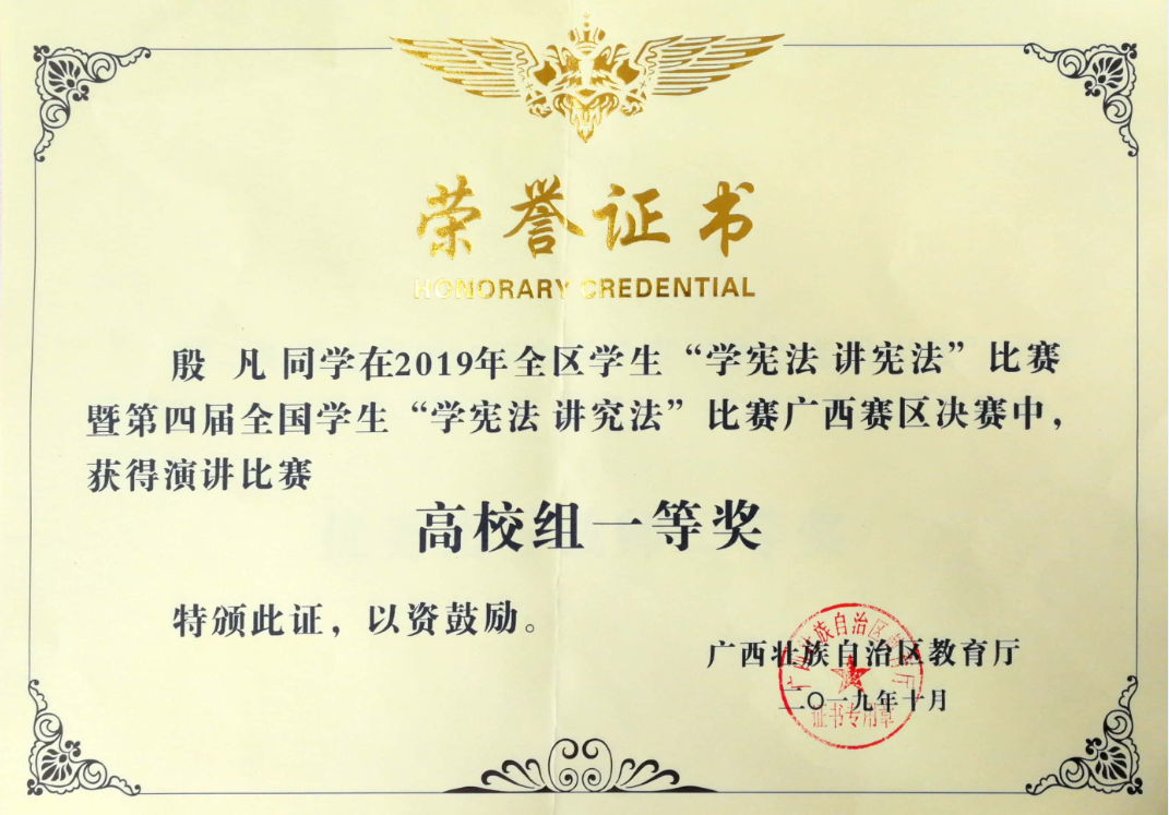 人才培养质量取得新成效 2012年,学院在读本科生400余人;2022年,在读本科生600余人、硕士生157人,另有知识产权辅修学位学生200余人。学生学风优良,到课率、毕业率、考研率和英语四级通过率等一直位居全校前列;学生积极参加国家级、广西区级各项专业竞赛,其中2人次获得全国学生“学宪法讲宪法”演讲比赛广西区赛区决赛一等奖,获得1次“八桂法声”法学专业辩论赛冠军,获得1项“互联网+”大学生创新创业大赛广西选拔赛金奖、1项挑战杯广西大学生课外科技作品竞赛一等奖。