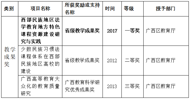 教学改革创新争取新成绩 学院注重依托广西少数民族地区特色,围绕少数民族习惯法等广泛开展课程建设、教学改革和教学研究等活动,取得较为显著的成果。2012年以前,学院共获得省级教学成果奖1项;截至2022年,省级教学成果奖共3项,十年期间增加2项,其中1项为自治区级教学成果一等奖。