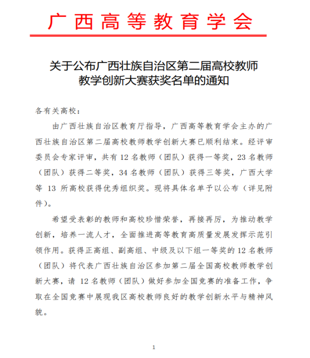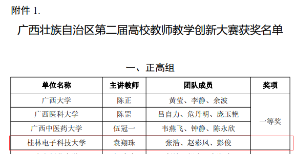图 2 广西第二届高校教师教学创新大赛一等奖