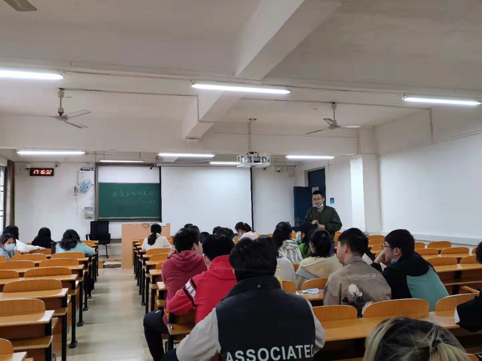 校园探春活动结束后,程飞和2019级知识产权(一)班的同学们在三教101教室召开室内班会,同学们踊跃发言,纷纷表达对此次校园探春活动的愉快感受,也提出对即将到来的大四生活的美好憧憬。接着,程飞就大学生身心的健康发展、专注的工作状态、崇高的理想信念等方面作出总结指导,建议同学们要加强日常锻炼,注意身心健康,强调在生活和学习中应保持专注的工作状态,树立崇高的理想信念,争做新时代的好青年。