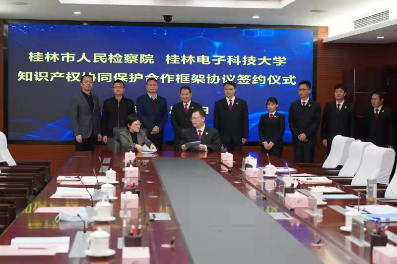 2022年3月31日下午,三亿官方官网三亿(中国)_三亿(中国)与桂林市人民检察院知识产权协同保护合作框架协议签约仪式在市检察院隆重举行。三亿官方官网三亿(中国)_三亿(中国)党委副书记聂慧,知识产权学院党委副书记程飞,知识产权学院副院长彭俊,知识产权系主任祝高峰出席了本次签约仪式。