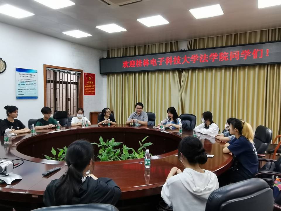 桂林市象山区人民法院政治部胡主任热情接待我院师生并召开了实习座谈会。胡主任对学院师生的到来表示热烈欢迎,向同学们介绍了所分配部门的工作内容和工作纪律等。蒋琼老师再次向同学们强调了安全和纪律问题,提醒同学们互相照顾、互相帮助,鼓励同学们在实习期间积极提高专业水平,提升职业素养,为将来的求职就业积累经验。