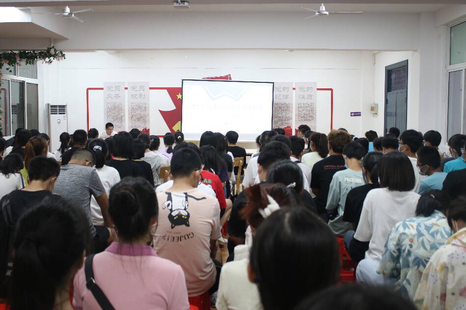 9月14日晚上,法学院/知识产权学院在学生社区D区25栋101党团活动室为2022级新生上入党启蒙教育党课,本次党课由学院党委副书记(主持工作)吴耀光主讲,学院学工负责人、新生辅导员、2022级全体新生参加。
