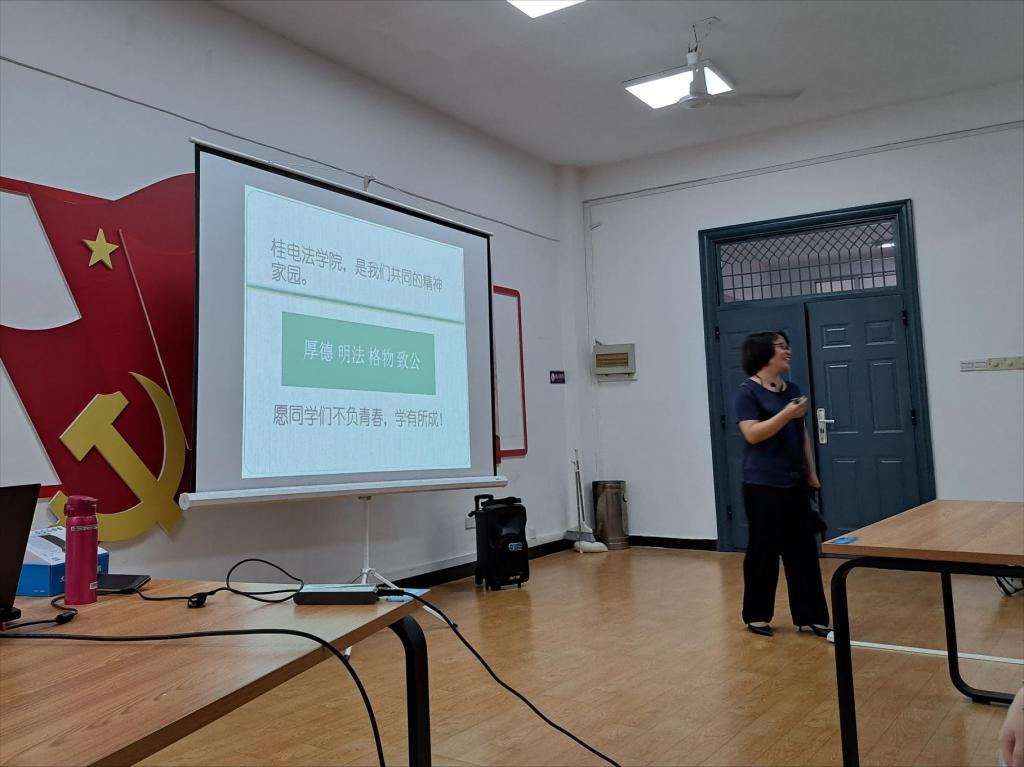 会上,高兰英以学院介绍为切入点,讲解了学院发展历程、师资团队、机构和平台等方面的情况,帮助同学们正确认识学院和了解专业,希望大家抓住在桂电求学的宝贵机遇,树立远大目标,做到自信、自立、自强,在大学之初开好头、起好步,强化沟通交流,努力克服学习生活中常遇到的问题,德法兼修、明法笃行,打牢法学知识功底,加强道德养成,培养法治精神,不负韶华、追求卓越,用奋斗书写无悔青春。