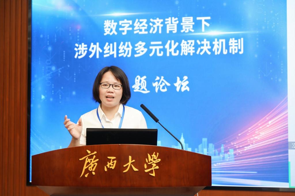 近日,由广西壮族自治区司法厅和广西大学联合主办、广西大学法学院承办的“数字经济背景下涉外纠纷多元化解决机制”主题论坛在南宁举行。来自武汉大学、南京大学、中山大学、暨南大学、中国政法大学、华东政法大学、西南政法大学等区内外各有关高校和法律实务部门的专家、学者近80人参会,以线上线下相结合的方式进行了交流探讨。