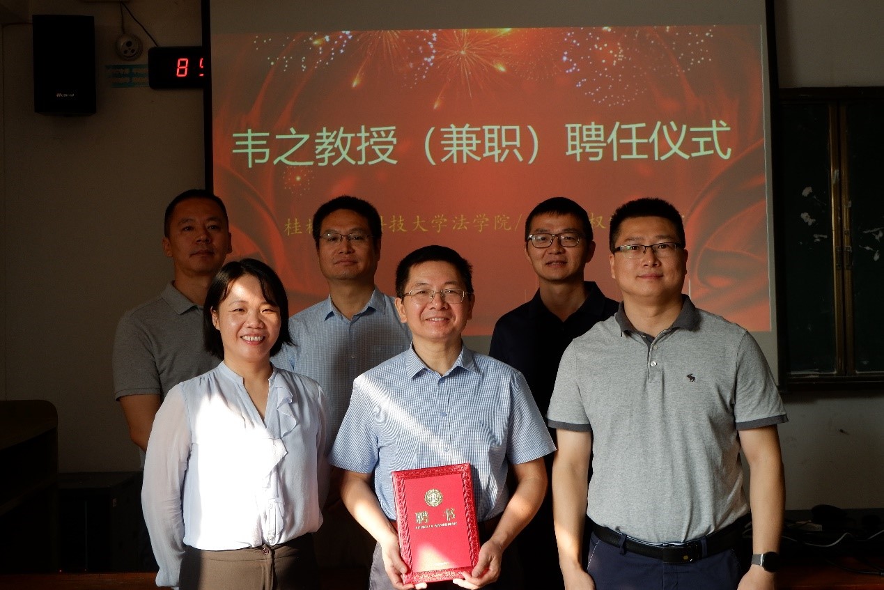 聘任仪式上,高兰英院长介绍了韦之教授的求学、教学、科研经历,并对韦教授的到来表示了热烈欢迎。作为法学院/知识产权学院新聘兼职教授,韦教授感谢三亿官方官网三亿(中国)_三亿(中国)法学院/知识产权学院的信任,并相信能够在桂电这片学术的沃土上做出自己的贡献。聘任仪式上,学院领导为韦之教授颁发聘任聘书,并合影留念。