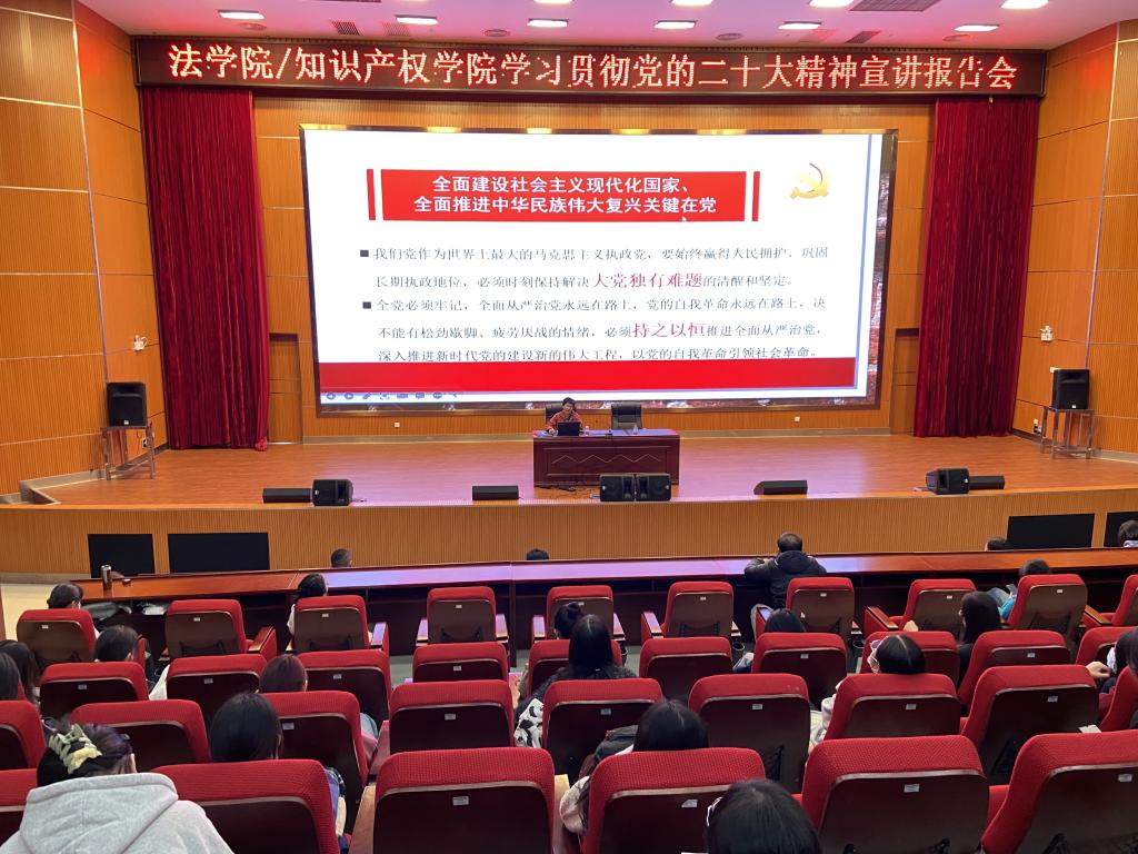 11月18日下午,三亿官方官网三亿(中国)_三亿(中国)党的二十大精神理论宣讲团成员、马克思主义学院教授石奎到法学院/知识产权学院作党的二十大精神理论宣讲报告,学院领导班子成员、全体教职工、入党积极分子、发展对象等200人聆听了报告。