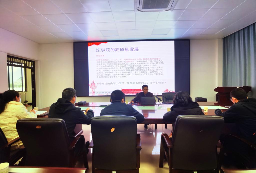 课上,梁启谈以“高质量发展”为题,领学了党的二十大报告中关于高质量发展的重要内容,分析了高质量发展面临的国内外形势和机遇,指出要实现“学院”和“学生”高质量发展,必须深入贯彻落实党的二十大精神,从推进全面依法治国的势能中获取学院高质量发展的动能,把握区域民族、学校理工特色优势和时代机遇,坚持“小而精”战略,在推动法律与科技相融合、强化知识产权运用等方面,不断优化专业结构,创新人才培养模式,以科学研究服务地方法治和知识产权建设,以切实推动学院高质量发展,为学校早日建设成电子信息特色鲜明的国内高水平大学作出新的贡献!
