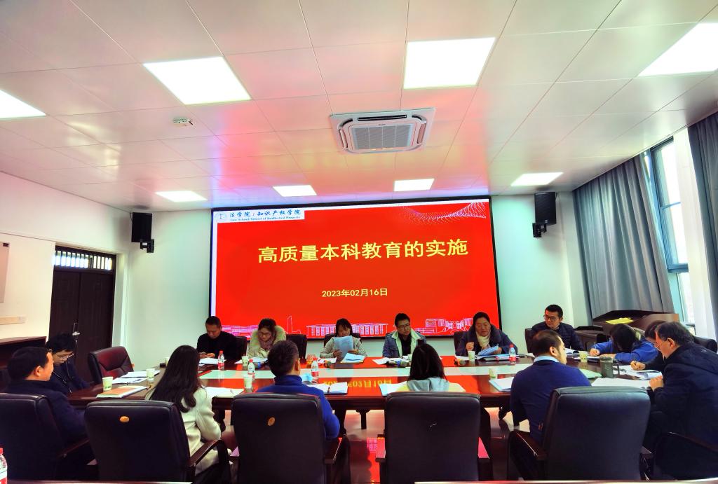 2023年2月16日上午,法学院/知识产权学院在四创中心一号楼304会议室召开会议,会议由赵玉意副院长主持,教务处李晓记副处长、周静科长、学院领导班子、校院督导、学院团委书记、各教学团队负责人、有关课程负责人以及部分青年教师与会。会议议程按照高质量本科教育的实施、2023级人才培养方案修订与课程改革、审核评估工作的部署三个会议主题依次进行。