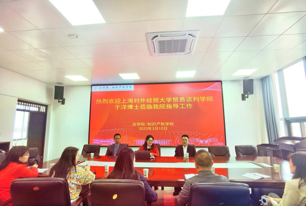为进一步促进交流,完善法律人才培养机制,加强专业建设,切实担负起培养专业法律人才的职责。3月10日下午,法学院/知识产权学院在四创中心一号楼304会议室召开与上海对外经贸大学贸易谈判学院于洋博士专业交流座谈会,院领导和部分教师参加,会议由赵玉意副院长主持。