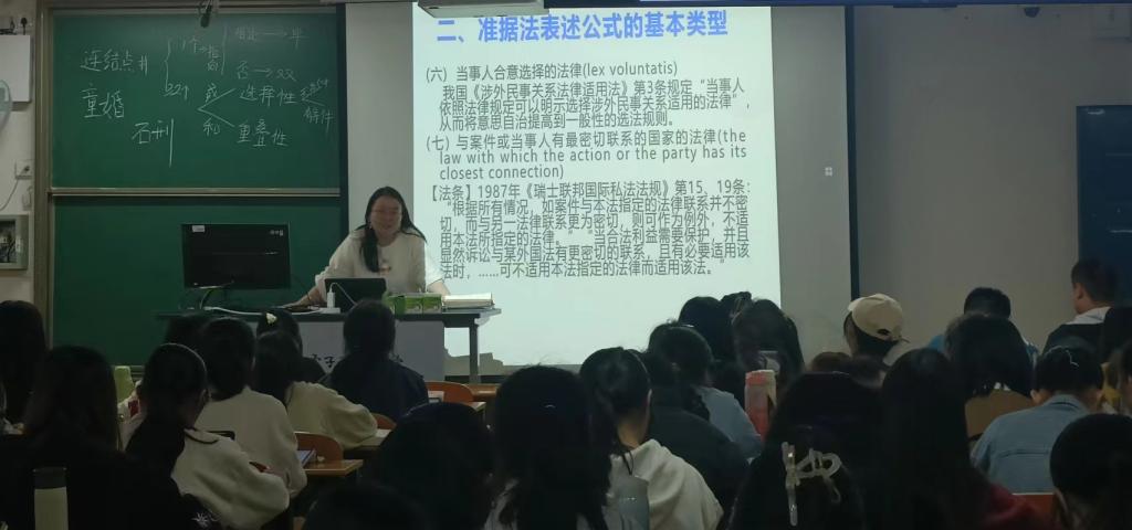 方梦源老师主讲的课程为《国际私法》,课程主要围绕“准据法”的相关知识点展开,课堂上使用了随堂测试等手段,在调动学生参与课堂的积极性之余还能够有效帮助学生记忆与消化知识点。