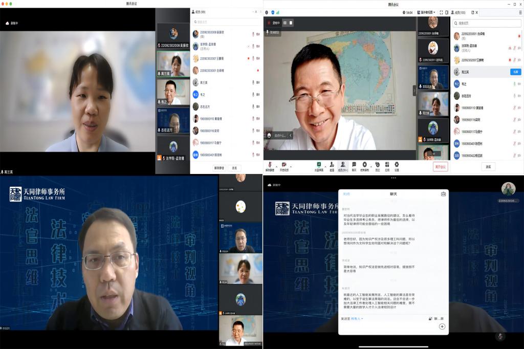 三位与谈嘉宾紧紧围绕“法律人是怎样炼成的”主题展开。高兰英院长、苏志甫顾问、韦之教授先后针对高校课程设置、律师事务所的日常法务工作、学生工作技能等与主题相关内容进行了提问交流。苏志甫顾问针对所提问题深入浅出的进行了解答,并针对当下热门的ChatGPT相关话题展开了讨论,建议当代大学生可以学习运用新兴的技术,但是不能被其所替代,对于ChatGPT输出的信息自身要有一定的辨别能力。
