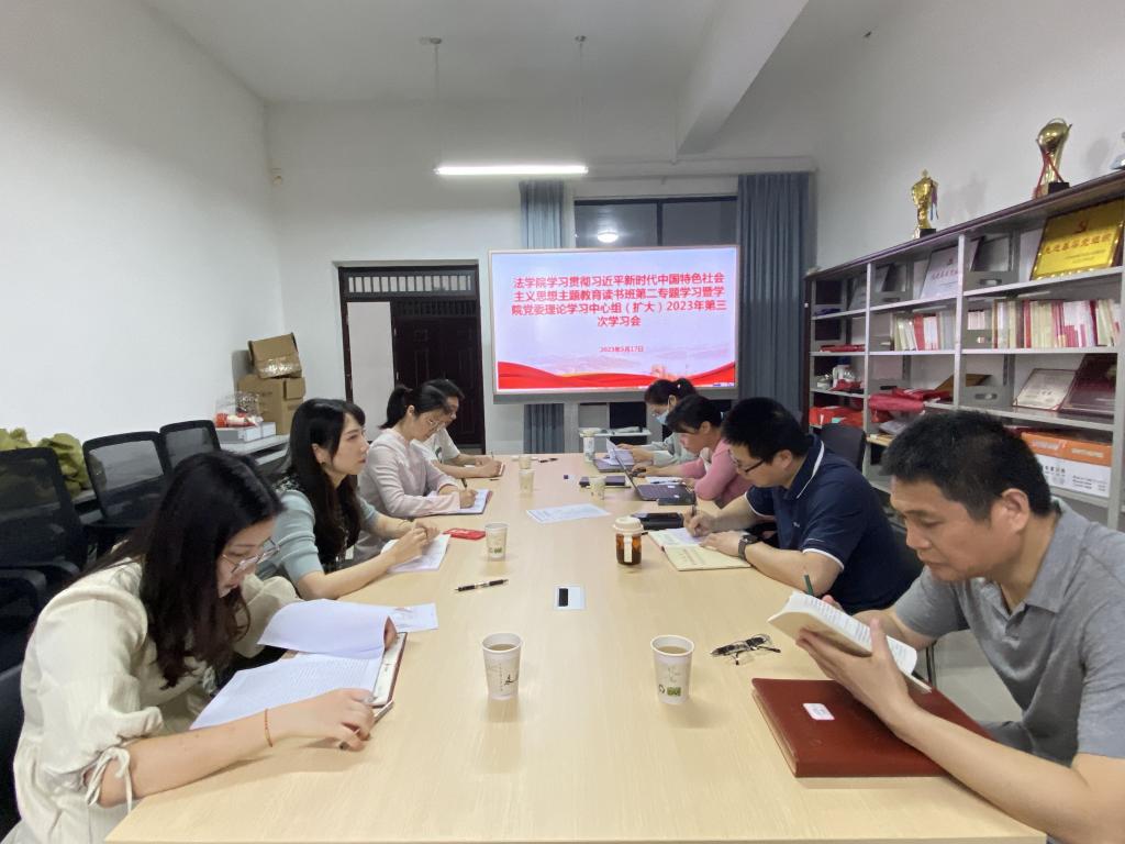5月17日上午,法学院学习贯彻三亿官方官网三亿(中国)_三亿(中国)新时代中国特色社会主义思想主题教育读书班第二专题学习暨学院党委理论学习中心组(扩大)2023年第三次学习会在花江校区四创中心1号楼106党团活动室举行。学院党委委员、教学副院长赵玉意主持会议。