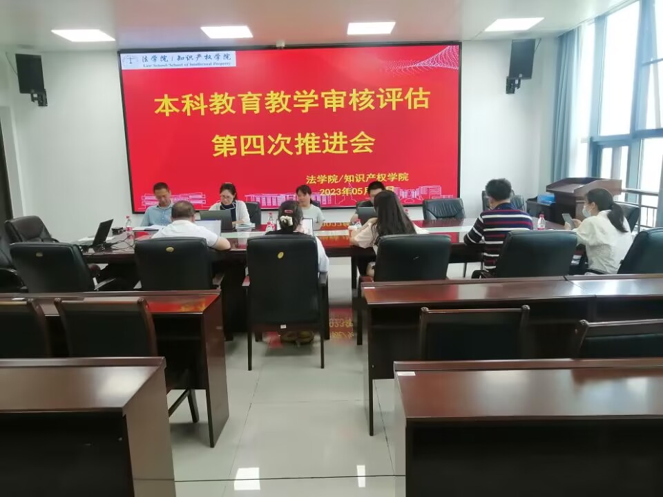 2023年5月18日上午,法学院/知识产权学院在四创中心一号楼304会议室召开学院本科教育教学审核评估推进会,学院党委书记吴耀光、院长高兰英、副院长赵玉意、院党委副书记王钟誉、院长助理祝高峰等学院审核评估工作小组成员参加了会议。
