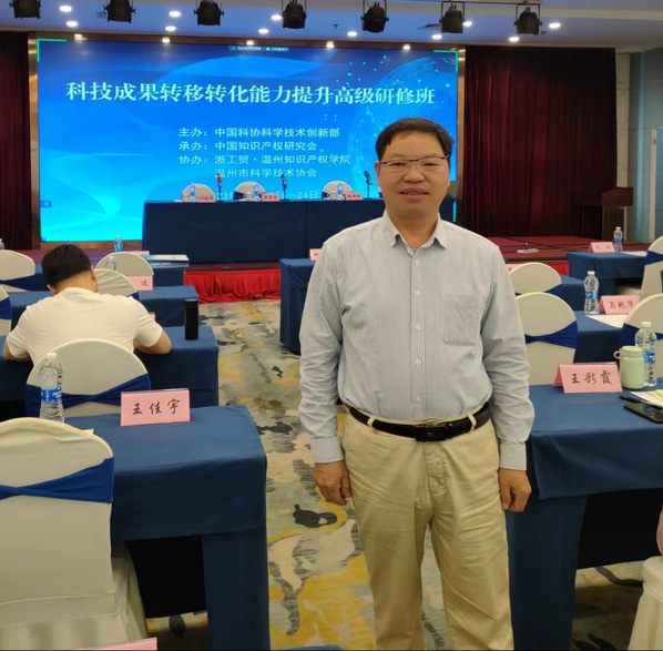 2023年10月19日至24日,中国知识产权研究会在浙江省温州市举办了“科技成果转移转化能力提升高级研修班”。学院周治德教授全程参与,经考核获得由人力资源和社会保障部专业技术人员管理司颁发的《国家专业技术人才知识更新工程培训证书》。