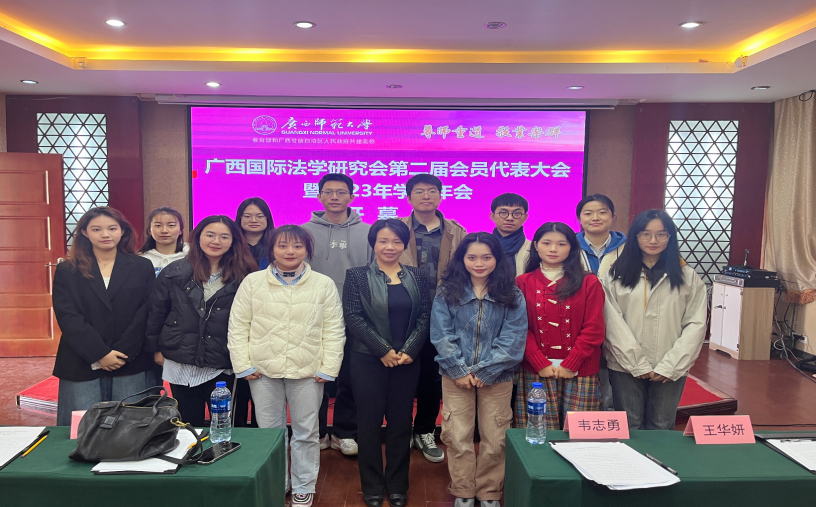2023年11月18日,由广西国际法学研究会主办,广西师范大学法学院承办的“广西国际法学研究会第二次会员代表大会暨2023年学术年会”在广西桂林市召开。我院院长高兰英教授及十余名研究生应邀参会。