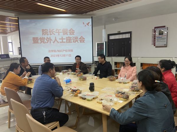 12月11日,法学院在四创中心1号楼二楼书吧召开院长午餐会暨党外人士代表座谈会,学院领导及党外人士教师代表参加,本次座谈会由学院党委书记吴耀光主持。