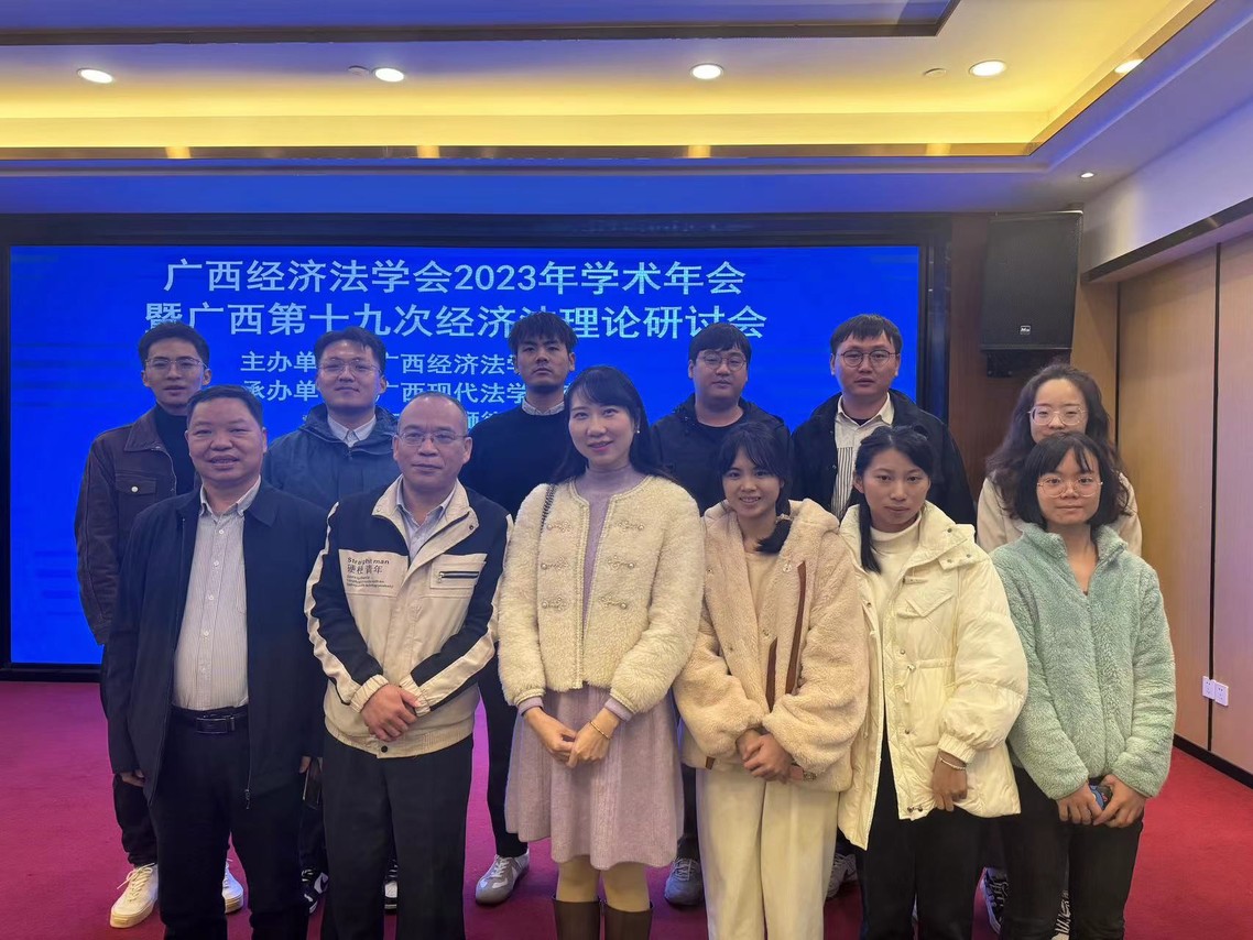 2024年1月6日,广西经济法学研究会2023年学术年会在南宁市顺利召开。本次年会主题围绕“中国经济高质量发展与经济法治建设”,来自区内外高等院校、科研机构、实务部门的专家学者和研究生参与了此次会议。我院周治德教授、赛铮副教授、琚磊副教授及多位硕士研究生赴南宁参会。