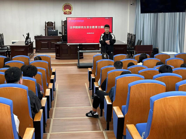 次日,在模拟法庭开展了研究生安全教育主题班会,研究生辅导员在会上结合近期发生的校园安全案例展开宣传教育,并与同学们交流了学习生活的近况,希望同学们在营造一个干净整洁、积极向上的宿舍环境的同时,能珍惜学校时光,实现全面发展。