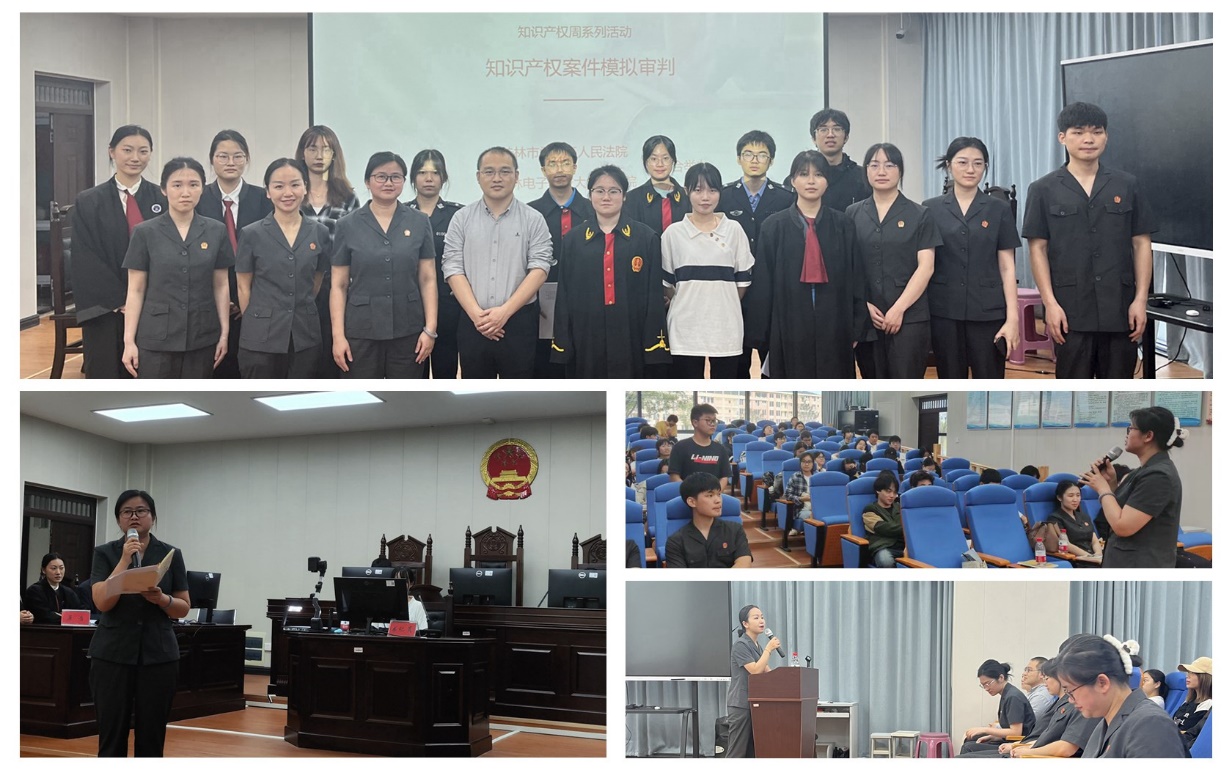 4月26日是第24个“世界知识产权日”。当天,我院与桂林市中级人民法院、桂林市叠彩区人民法院,在学院模拟法庭联合举办了知识产权案件模拟活动。桂林市中级人民法院、叠彩区人民法院的法官、干警出席了本次活动,由学院陈勰老师主持。学院2021、2022、2023级知识产权专业的同学参加活动。