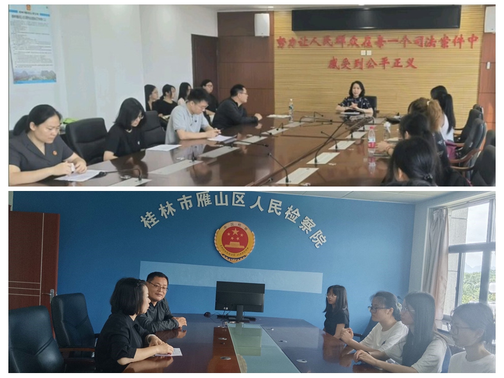 7月8日到10日,我院70名2022级同学分7组,分由彭俊院长、胡建新老师、伍跃华老师、黄保持老师、华明立老师带队,分赴桂林市人民检察院、桂林市劳动人事争议仲裁院、叠彩区人民法院、雁山区人民检察院、七星区人民法院、桂林市仲裁委员会和象山区人民法院开展为期10周的专业实习。