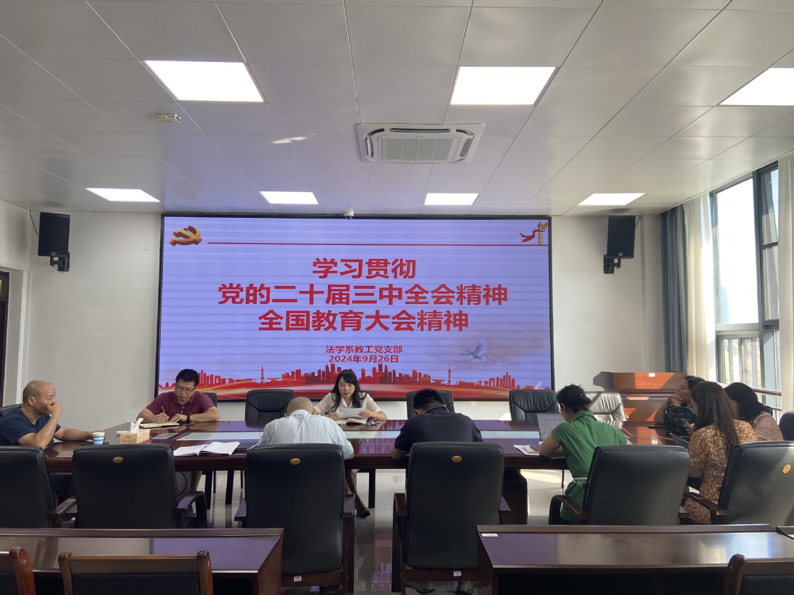 赛铮首先带领全体党员教师集体学习党的二十届三中全会精神及全国教育大会精神。接着总结上学期法学系工作并布置本学期工作任务。赛铮从思政工作、理论学习、党纪教育、基础设施建设、理论教学、宣传工作等方面进行总结。并就本学期工作计划围绕课程思政培训、全校通识课开展、青年教师培训等方面进行说明。
