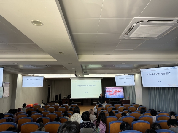 学院院长助理陈勰老师为同学们阐述了毕业设计(论文)的重要性、具体安排和相关要求,通过生动案例重点强调了学术不端行为的处理后果,鼓励同学们以严谨的态度做好毕业设计(论文),积极探索和发现问题。详细讲解了毕业设计(论文)的撰写方法和格式规范。