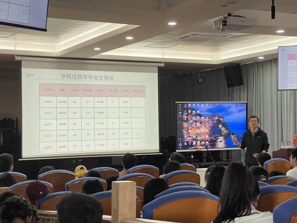 学院党委副书记王钟誉向2021级全体同学通报了学院近几年毕业生去向,并鼓励同学们积极备战考研,根据个人情况合理报考考研院校;同时,面对严峻的就业形势,王钟誉希望同学们树立先就业后择业的观念,脚踏实地,从基层做起,积累经验,不断提高自己的职业素养和综合能力。