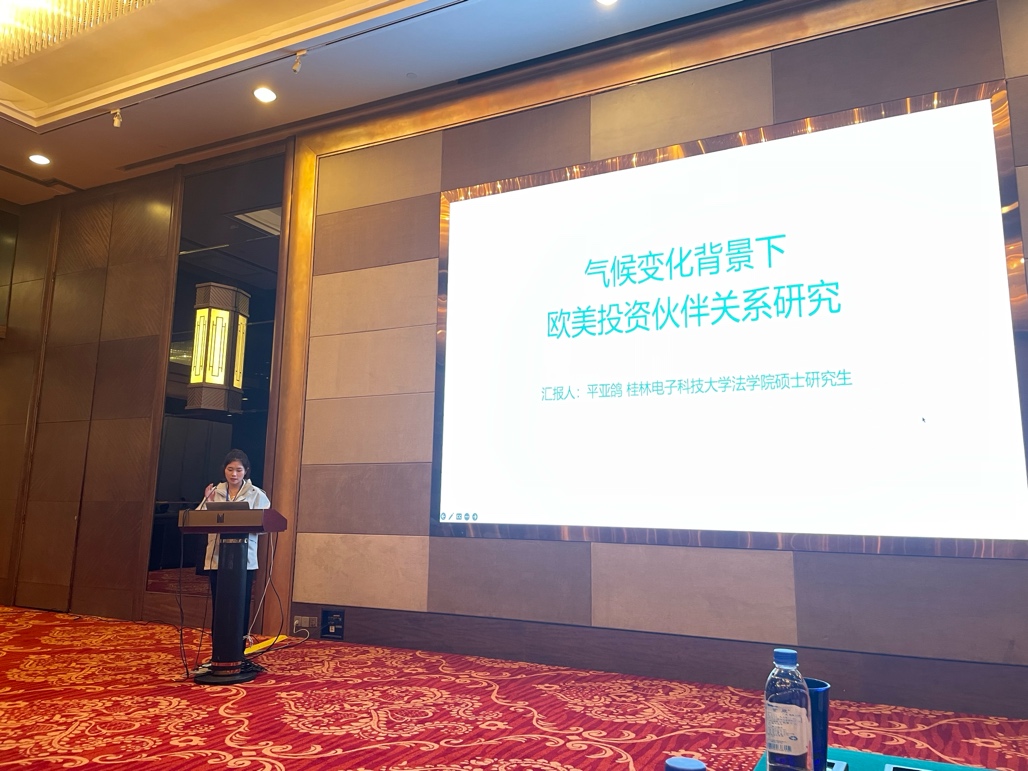 平亚鸽同学在分论坛七“国际投资法的社会责任维度”上做了题为《气候变化背景下欧美投资伙伴关系》的主题发言,该研究在导师赵玉意教授的指导下完成。分论坛主持人单文华教授和评议人徐崇利教授高度评价平亚鸽同学的发言和表现。