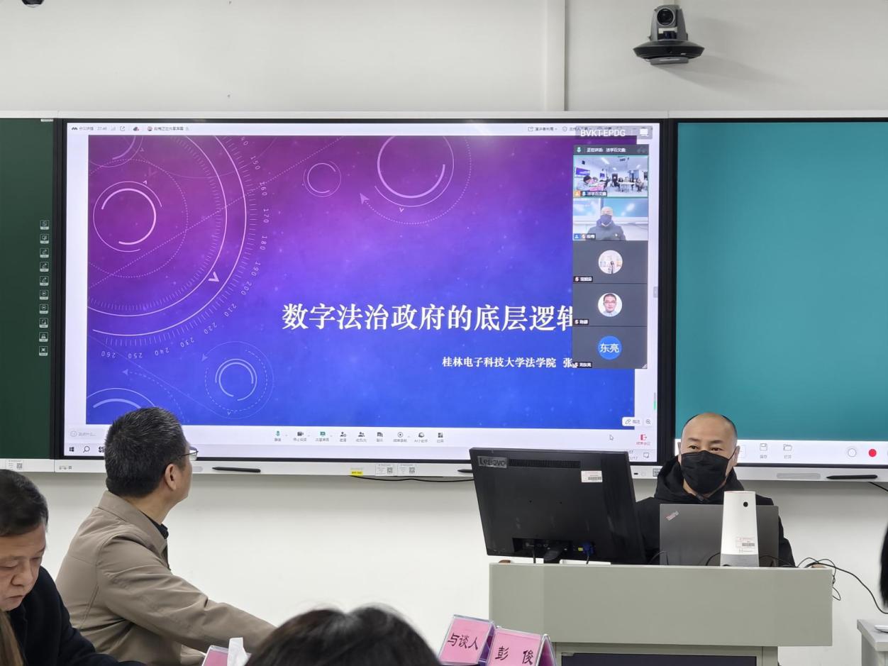 刘东亮和张浩两位老师的精彩发言深入浅出、脉络清晰、内涵丰富,赢得了现场师生的高度认可。在互动环节,主持人贾媛媛教授结合哲学上先验论与经验论展开分享,为讨论注入了哲学思辨的色彩。与谈人彭俊教授围绕人工智能的硬计算能否模仿人的软计算展开深入剖析,引发了大家对人工智能与法学结合的进一步思考。向忠诚教授围绕数字法治政府的效率与公平展开讨论与分享,赵彩凤副教授认为可以围绕数字法治政府的环境展开更深层次的挖掘,为后续研究提供新方向。刘广裕博士认为法律的根本逻辑与计算的根本逻辑有着天然的联系,逻辑与概率是计算法学的根本,为讨论提供了新的视角。同学们也积极参与,各抒己见。