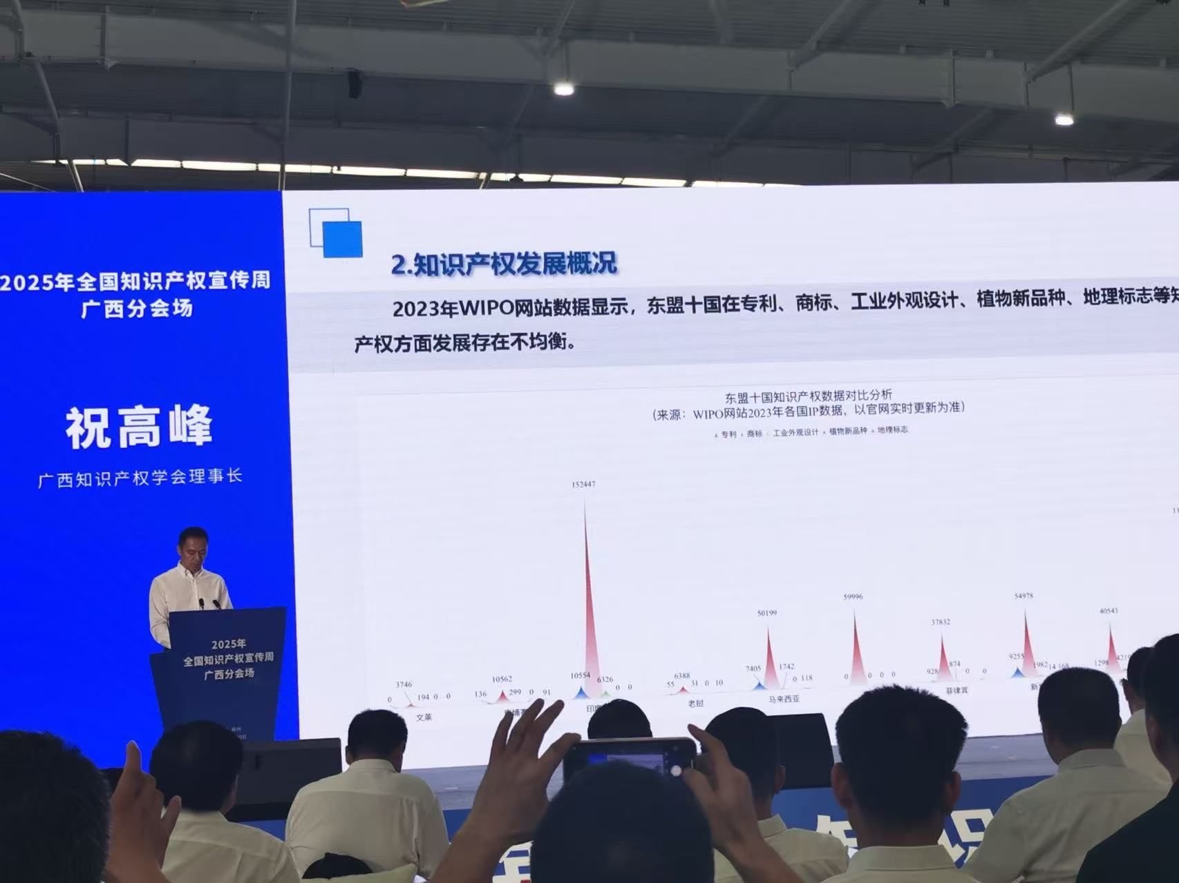 法学院/知识产权学院教师祝高峰副教授以广西知识产权学会副理事长身份参加该活动,并作海外知识产权纠纷(东盟篇)的发布报告。