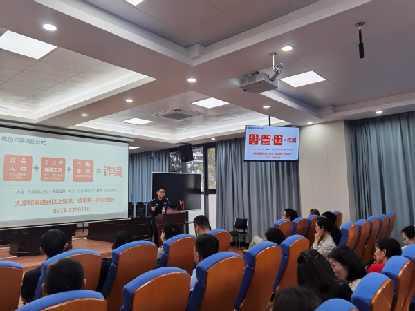 近日,法学院在四创1号楼模拟法庭组织开展教职工防范电信诈骗宣传活动,活动邀请灵田派出所所长陈嘉作为主讲人,保卫处副处长罗仕福、学院班子成员及全体教师参加活动。