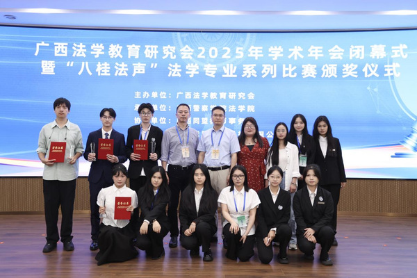 5月10日,由广西法学教育研究会主办、广西警察学院法学院承办的“八桂法声”法学专业系列比赛在广西警察学院举行。学院院长彭俊,副院长祝高峰、赛铮,院长助理陈勰,指导老师王雯雯、辅导员秦棋书,带领11名本科学生参加比赛。经过激烈角逐,23级潘科羽和24级卢怀宇分别获得演讲比赛二等奖和三等奖佳绩,22级薛安彤获得法律文书比赛三等奖佳绩,承栎辩论队获得辩论赛三等奖的好成绩。
