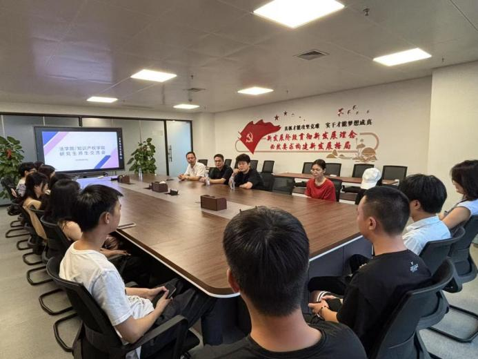 6月18日,法学院院长彭俊、副院长祝高峰以及辅导员一行前往桂电南宁研究院看望入驻研究生,并组织全体在院研究生开展师生交流会。