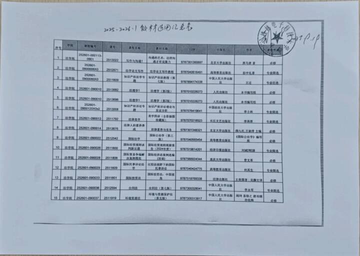 各位老师,这是2025-2026.1教材选用的汇总表,请各位查看。公示期间为2025年9月16日至9月18日,全院师生在此期间均可提出异议。