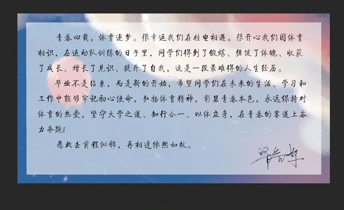 体育部主任梁益军寄语贺卡