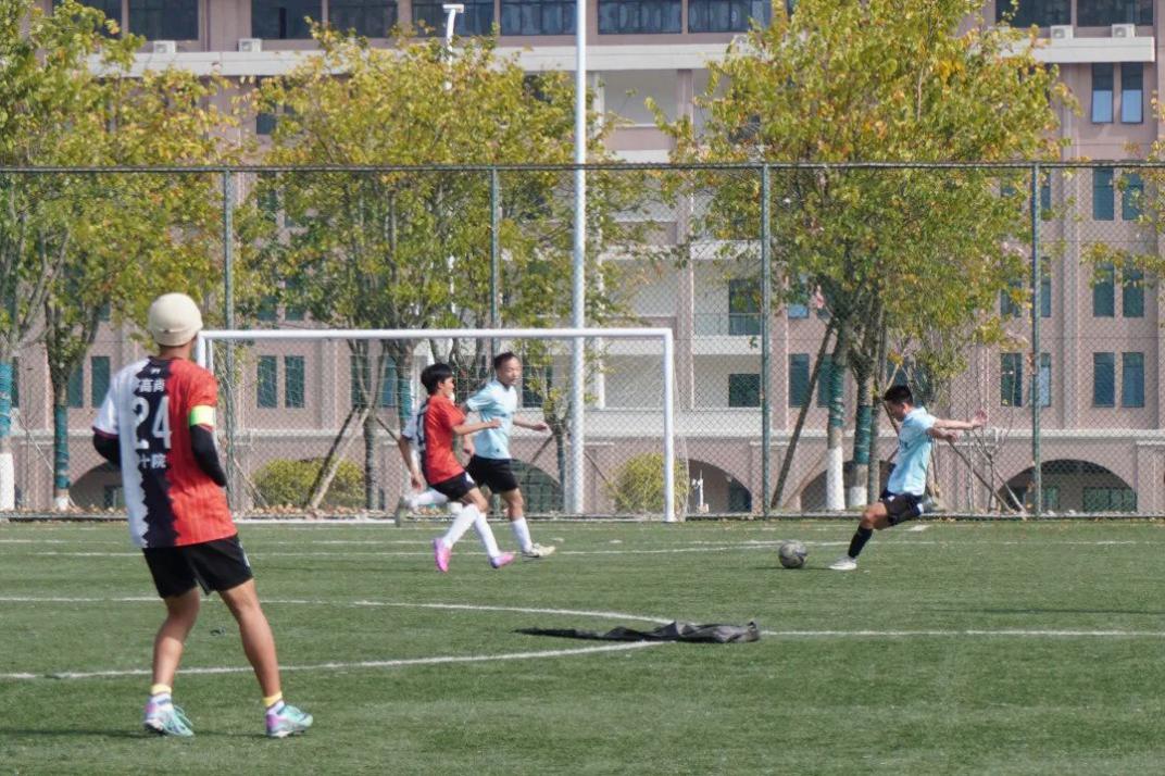 比赛开始,小组赛便精彩纷呈。开场双方迅速进入状态,教职工足球队配合默契、攻势猛烈,商院防守扎实、伺机反攻,比分胶着,局势紧张。淘汰赛阶段,竞争愈发激烈。在一场淘汰赛的点球中,商院守门员如有神功,连扑关键点球,助球队突围。决赛当天细雨蒙蒙,但观众热情不减,呐喊声此起彼伏。教职工足球队与研究生队展开了激烈的角逐。最终,教职工足球队凭借稳健的防守和出色的进攻战胜对手,夺得冠军。