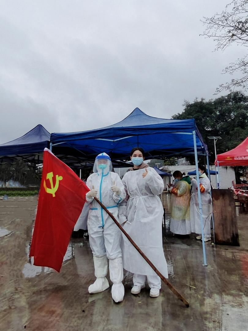 我是艺术与设计学院20004010班的黄艳,一场突如其来的疫情百色陷入了危难。疫情无情,人间有爱,我和小伙伴选择了第一时间站出来守护自己的家园。在乡镇干部的安排下,我的工作是收集检测信息,维护现场秩序,为全员核酸做准备工作。