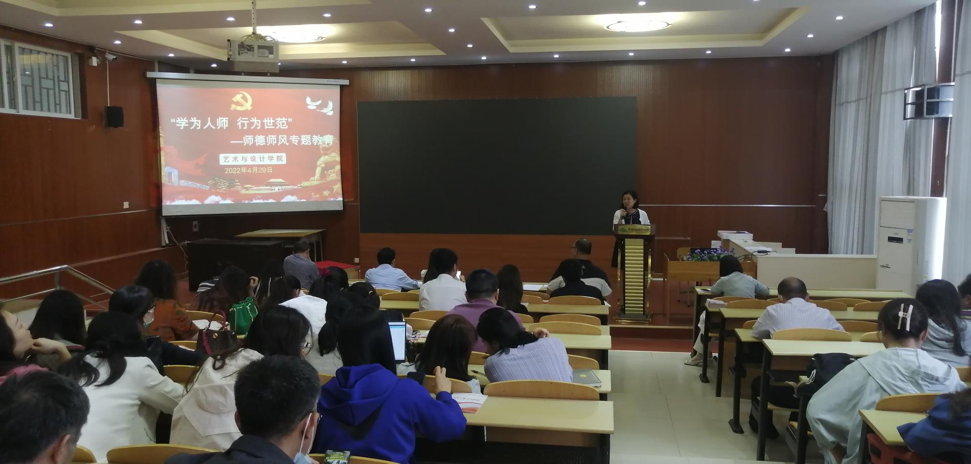 4月29日,艺术与设计学院党委在14教208室召开师德师风专题教育会。学院党委书记刘隽主持,全体教职工参加会议。