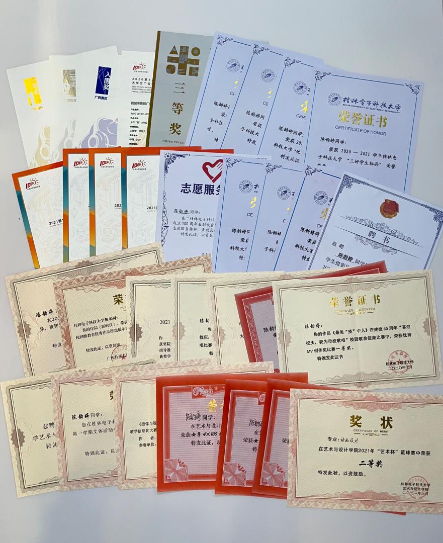 第12届大学生广告艺术大赛(广西赛区)一等奖1项、二等奖1项