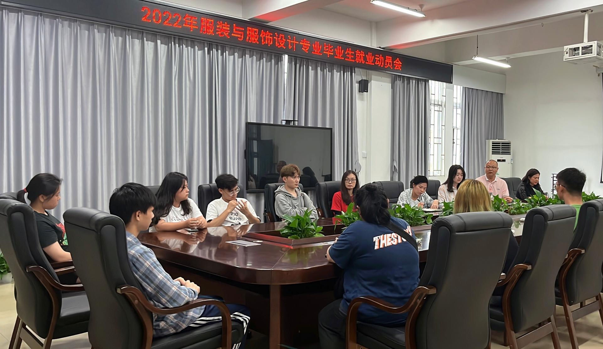 6月13日下午,服装与服饰设计专业在花江校区14318会议室召开2022届毕业生就业促进会。会议由服装系专业负责人汤洁主持,学院党委书记刘隽、党委副书记肖占兵出席会议,服装系高夏老师、学工黄蕾老师以及2022届毕业生代表参加了会议。