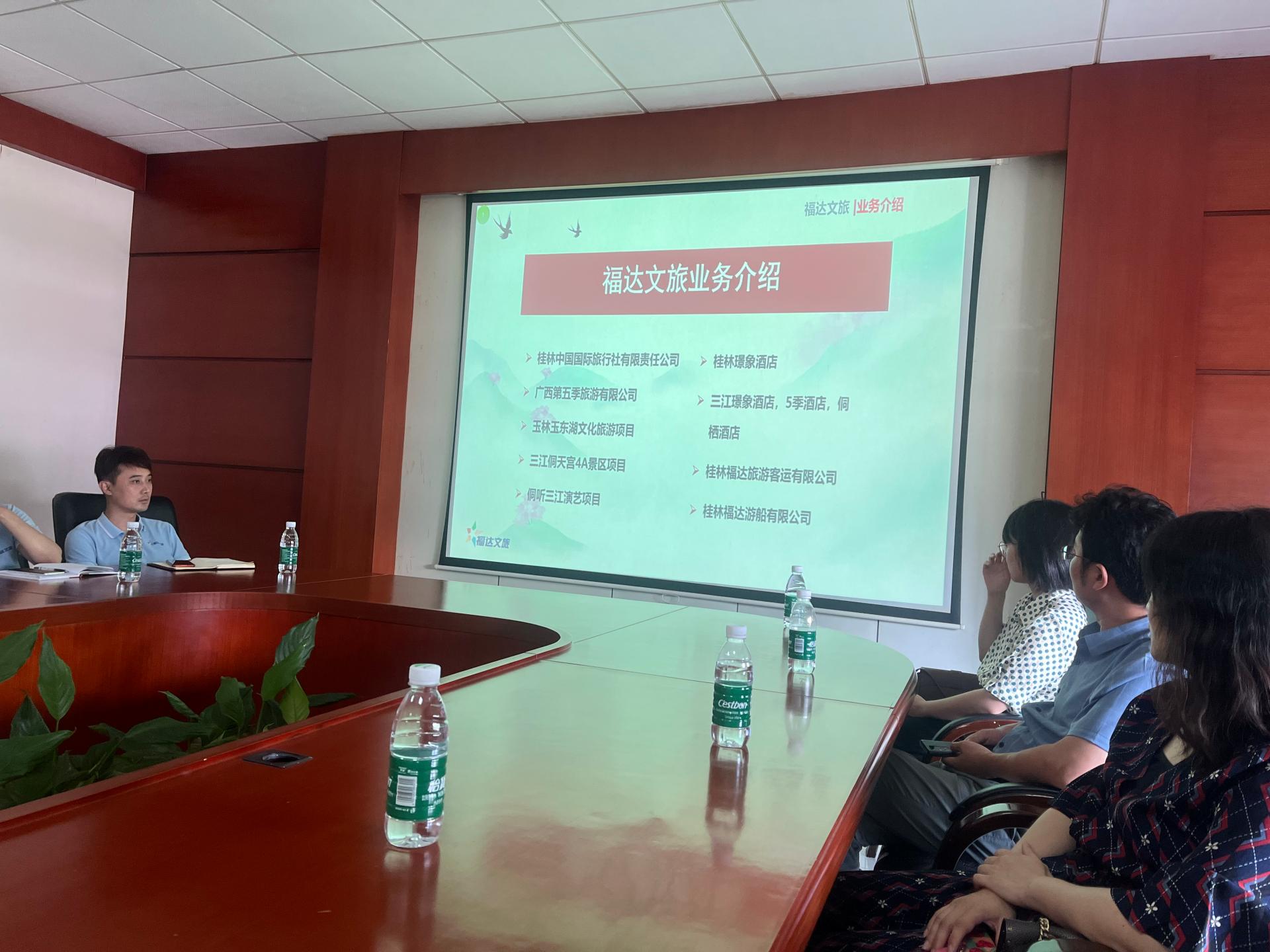 座谈会上,福达文旅股份有限公司总经理陈曦详细介绍并展示了公司相关产品及业务情况,随后叶德辉教授介绍了我院教学、科研等开展情况,校企双方就携手探索“校企合作共赢”的发展模式进行了深入的探讨和交流。最后,双方在市场研判与分析,落实大学生创新创业、社会实践,持续深化在旅游产品研发、研学课程开发和毕业生就业等校企合作达成了共识,双方均认为深入开展校企合作有利于实现学校、企业与学生三方的互利共赢。