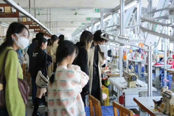 挂牌仪式后,公司董事长谢军带领学院师生走进公司设计部、生产车间、商店展厅等部门,了解公司先进的童装设计方法和生产流程,增强了学生对童装设计和生产的认识。