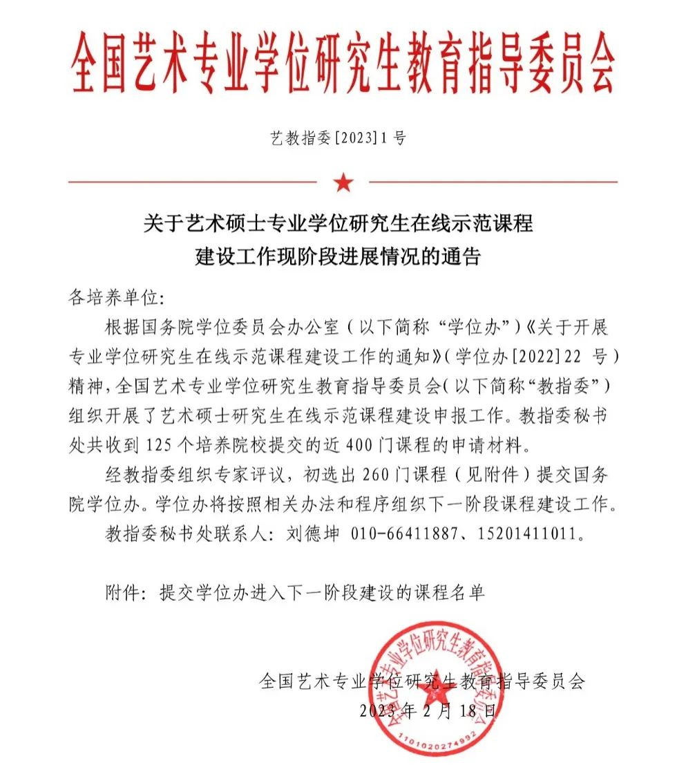 学院通过在线示范课程建设,将助推学院艺术硕士专业学位建设的高质量发展,树立课程建设新理念,充分发挥在线示范课程的示范引领作用,推进课程改革创新,建设适应新时代要求的研究生课程,为研究生打下坚实的知识基础和研究基础,切实提高人才培养质量,推动研究生教学迈上新台阶。