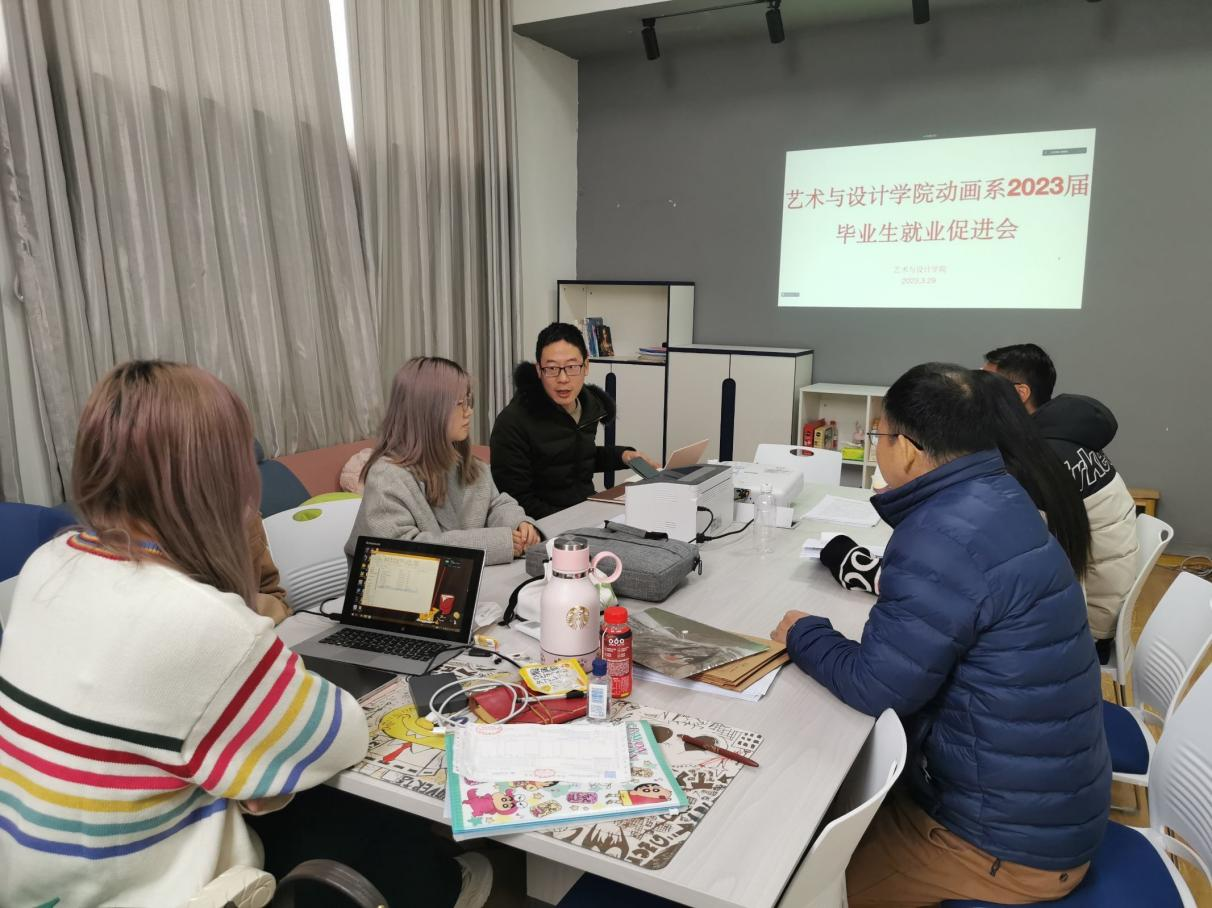3月29日上午,艺术与设计学院动画系在14512会议室召开23届毕业生就业促进会。会议由系主任赵勤恒老师主持, 动画专业辅导员周赢老师及四个工作室的教师以线上线下的方式全体参加了本次会议。