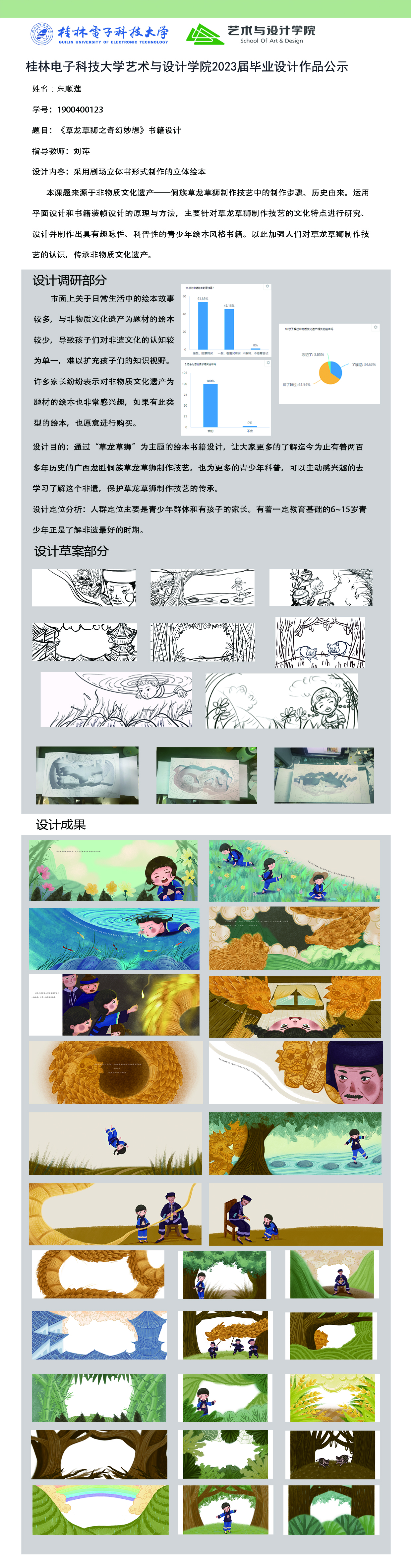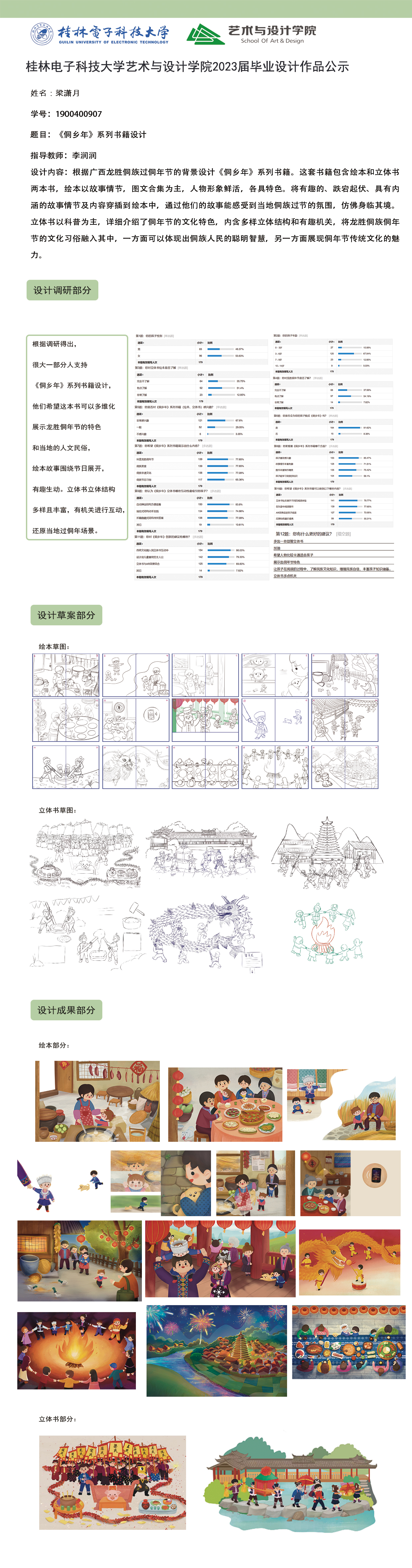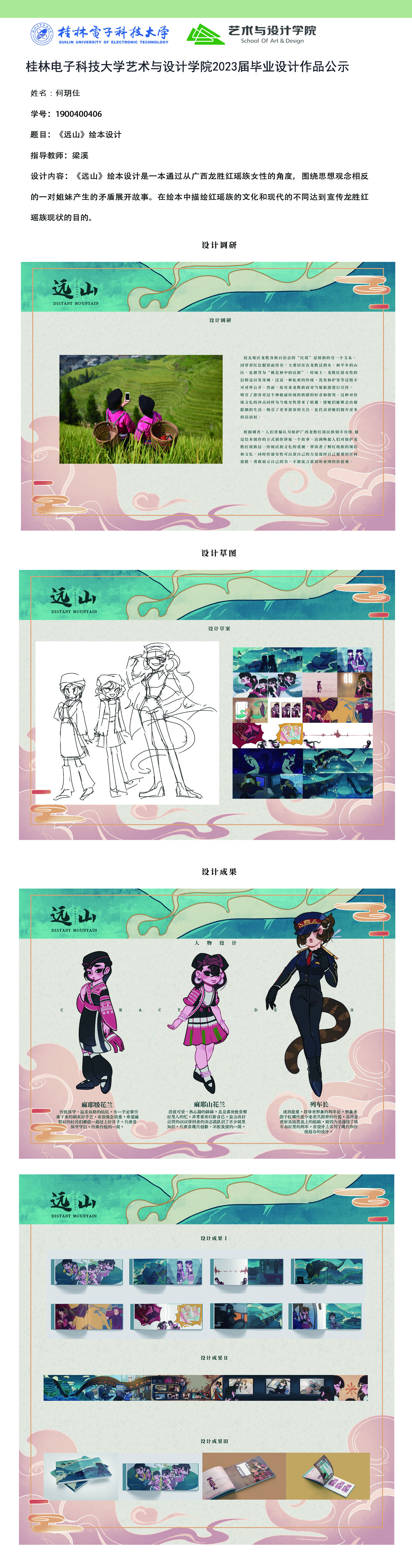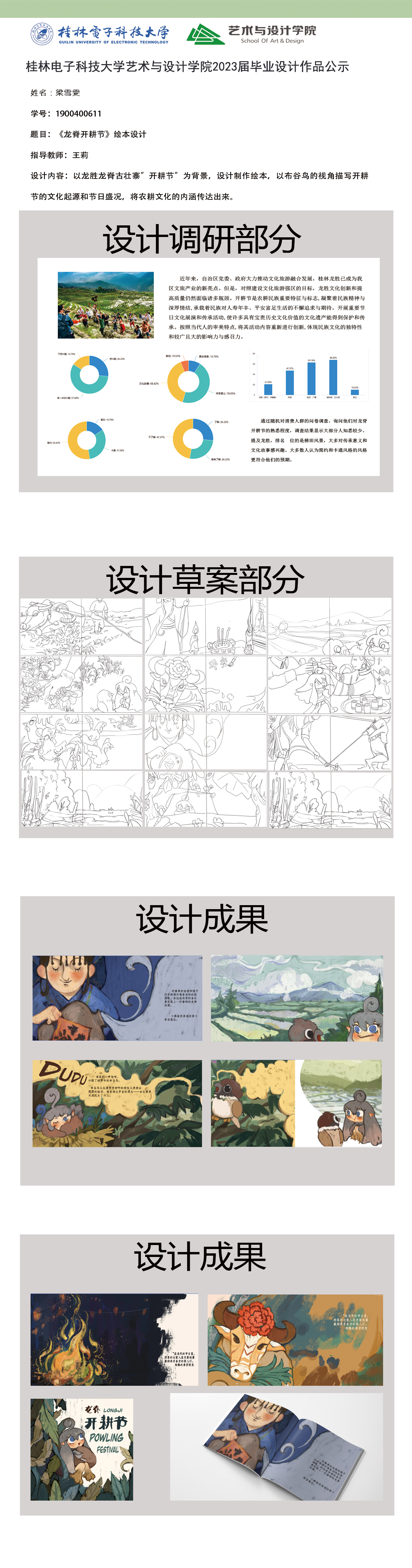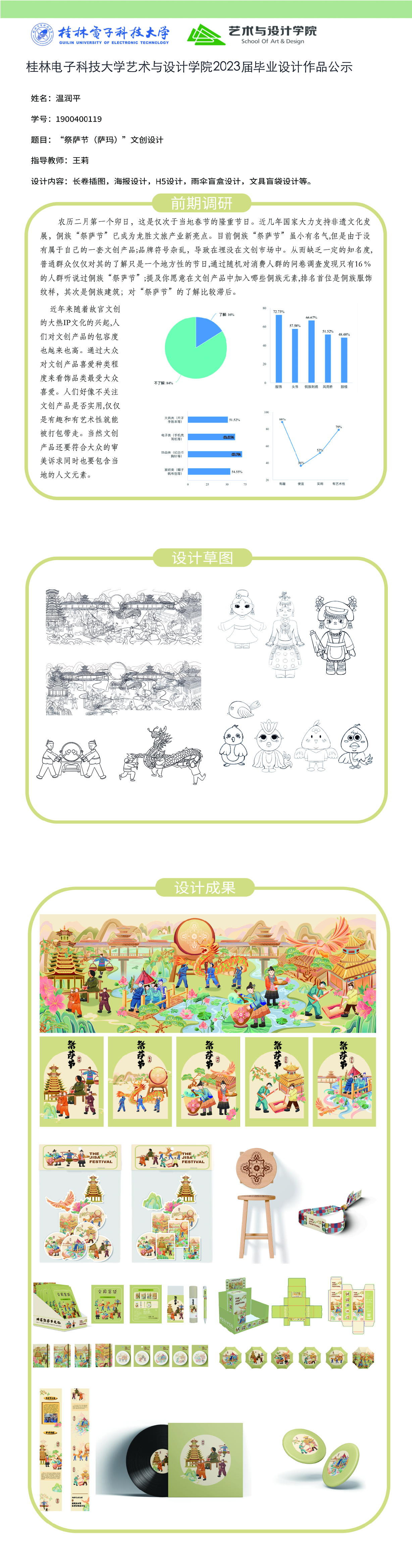 根据毕业设计管理文件规定,现将2023届视觉传达设计专业毕业设计作品进行公示。对所公示的作品如有疑议,请实名举证。公示期为三天(2023.04.20-2023.04.22)。作品公示期间的意见反馈邮箱:4575145@qq.com,联系电话:18677370501。