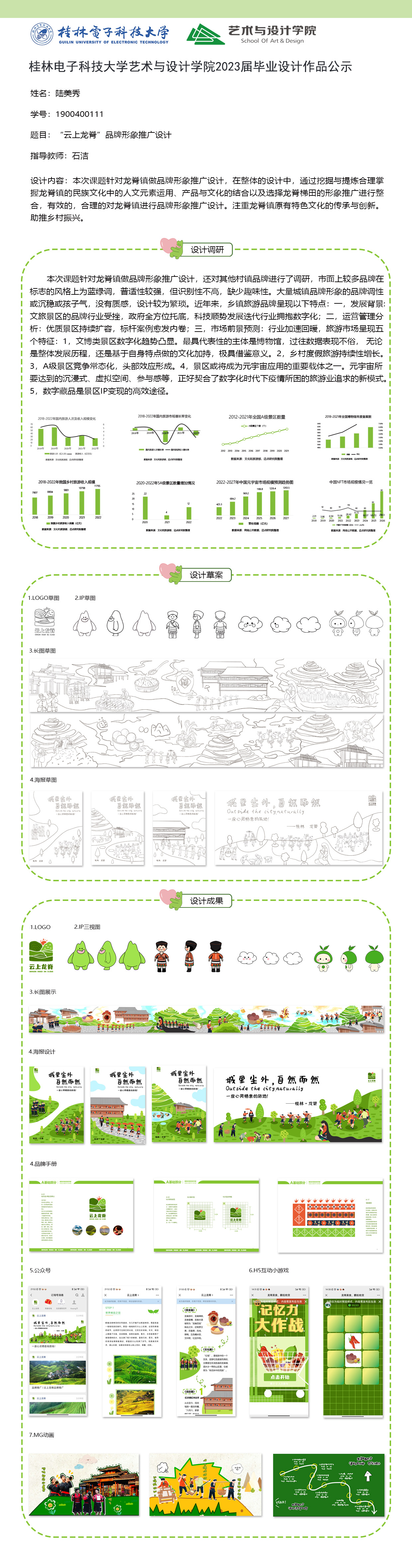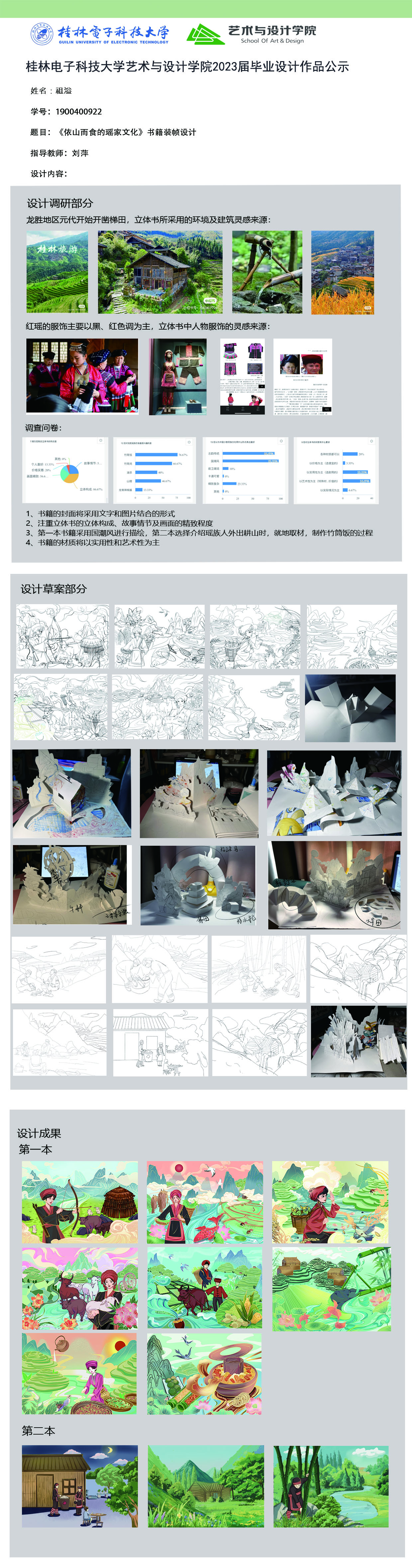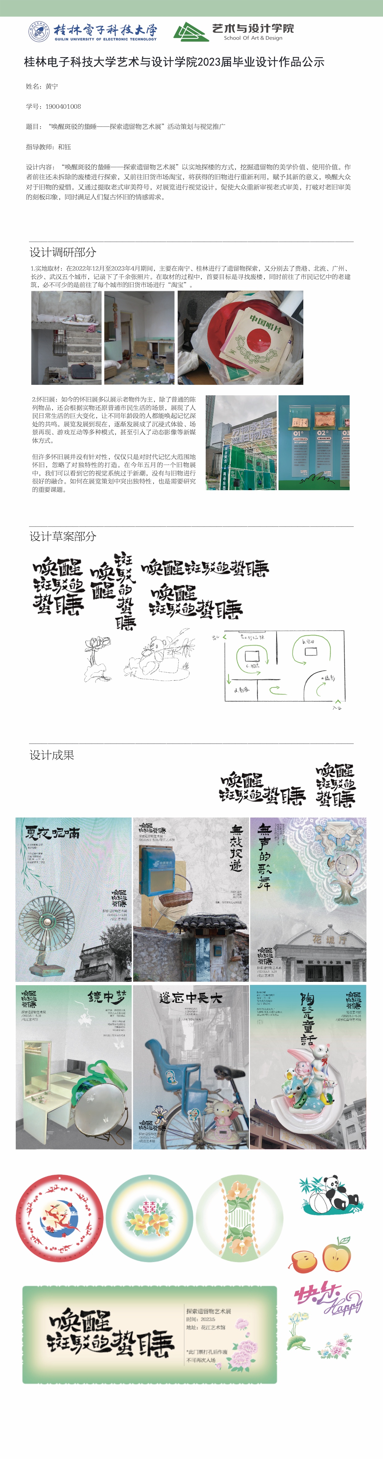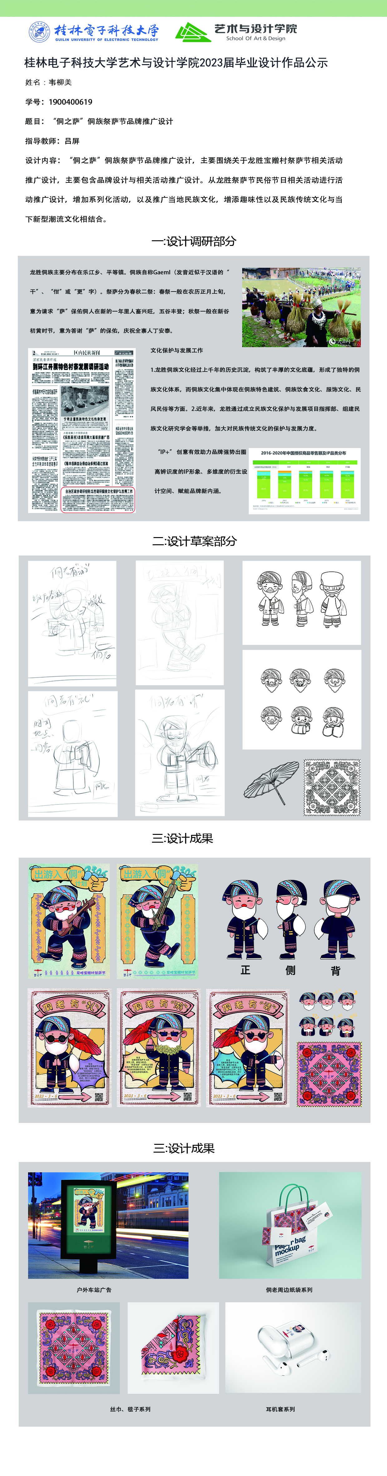 根据毕业设计管理文件规定,现将2023届视觉传达设计专业毕业设计作品进行公示。对所公示的作品如有疑议,请实名举证。公示期为三天(2023.04.20-2023.04.22)。作品公示期间的意见反馈邮箱:4575145@qq.com,联系电话:18677370501。