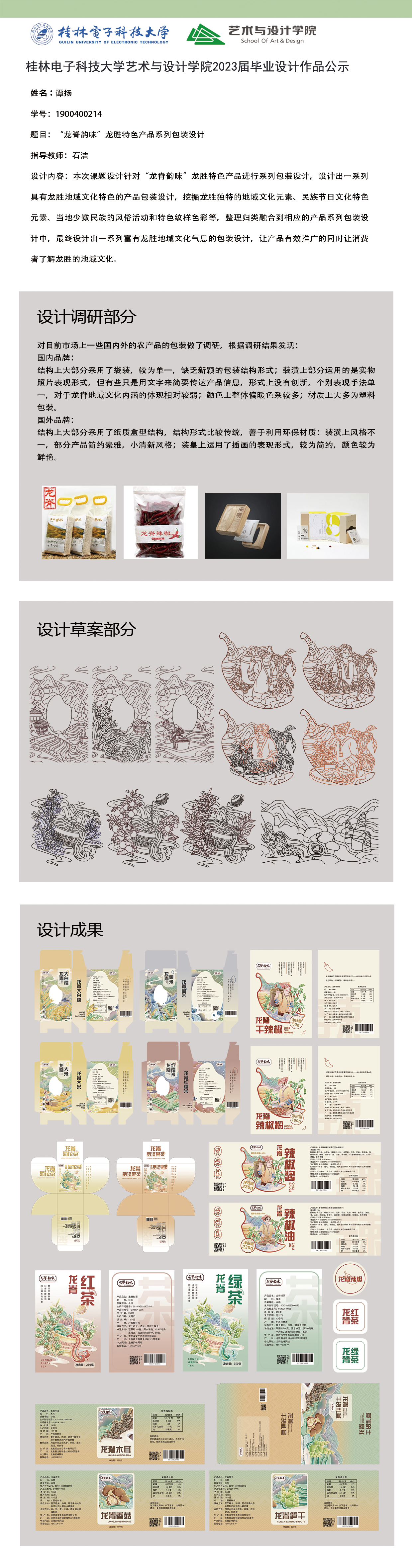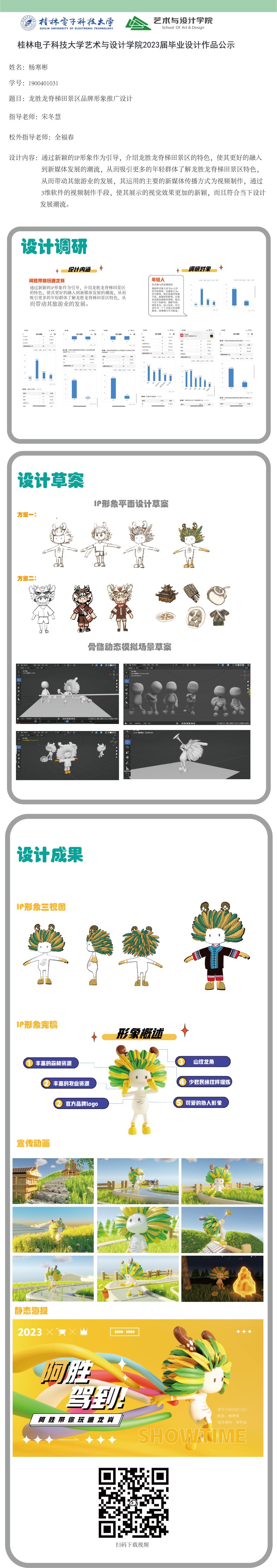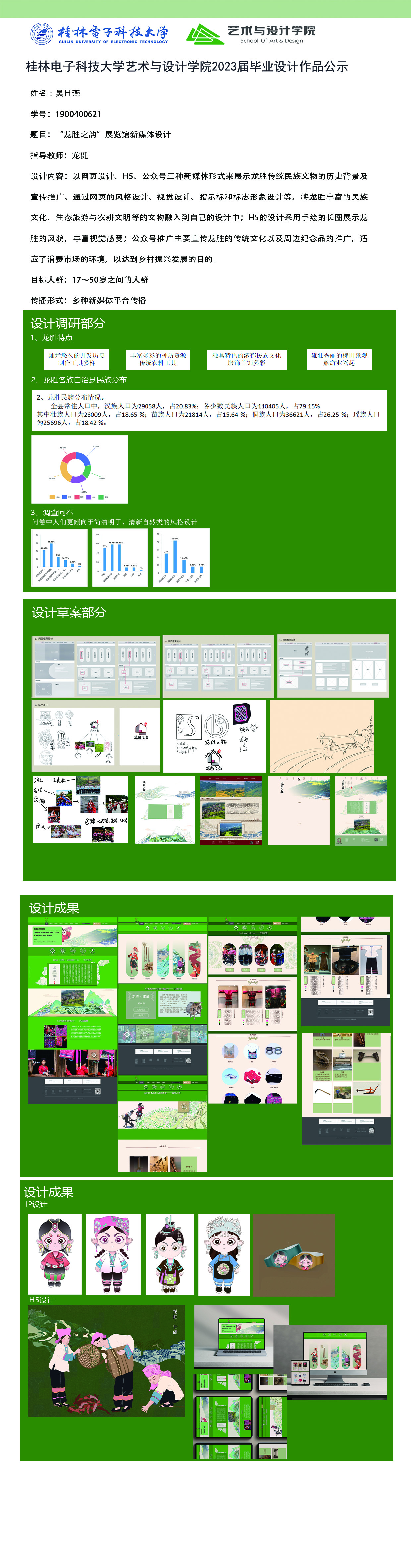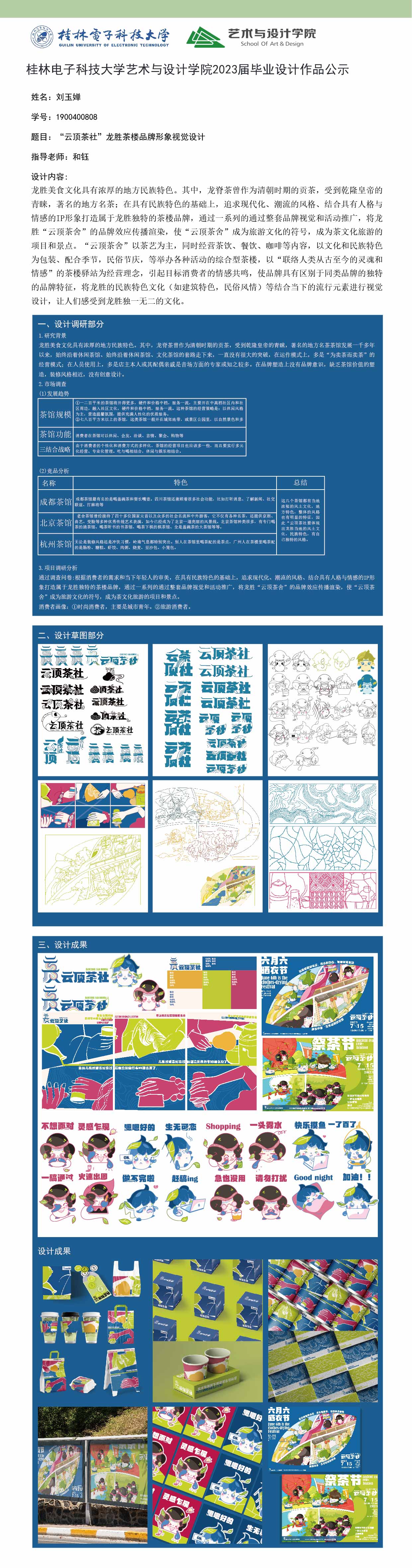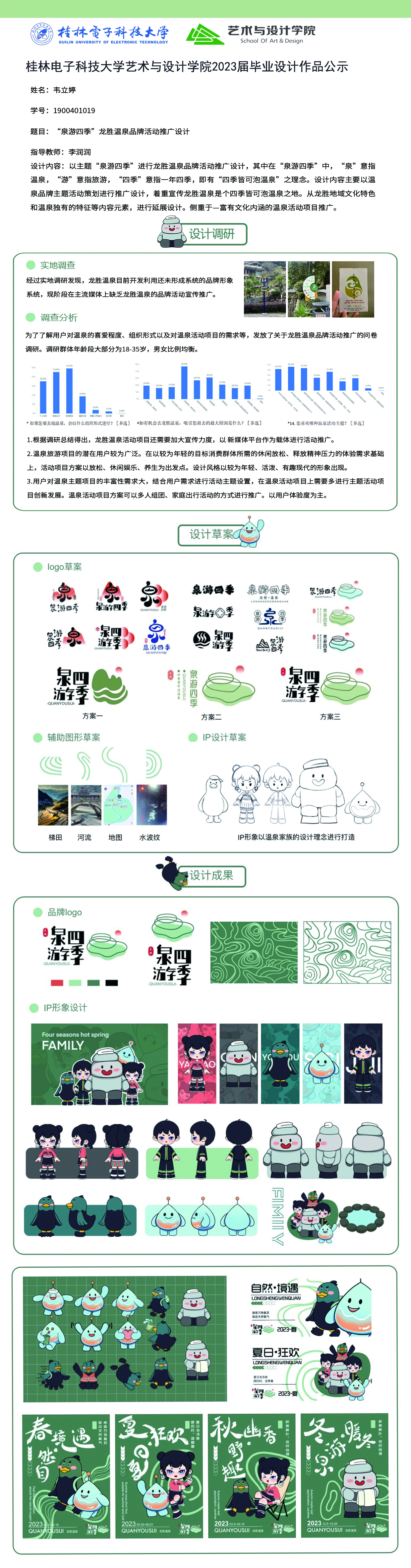 根据毕业设计管理文件规定,现将2023届视觉传达设计专业毕业设计作品进行公示。对所公示的作品如有疑议,请实名举证。公示期为三天(2023.04.20-2023.04.22)。作品公示期间的意见反馈邮箱:4575145@qq.com,联系电话:18677370501。