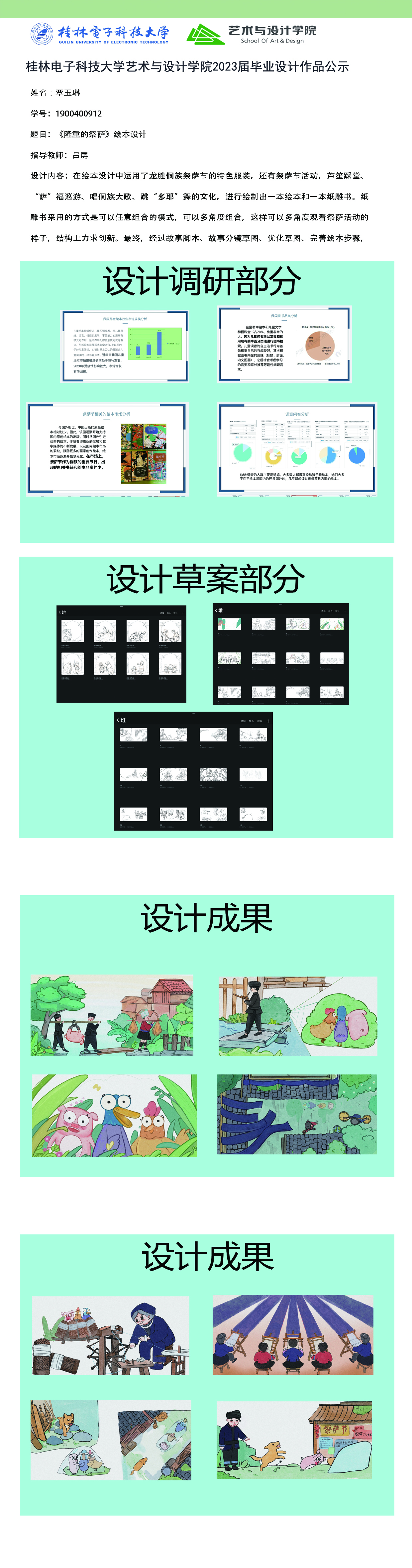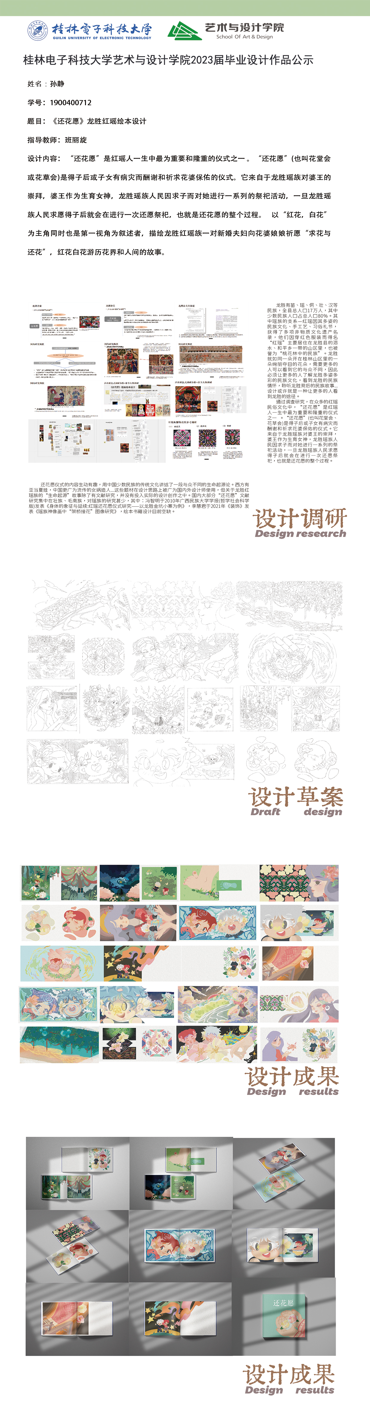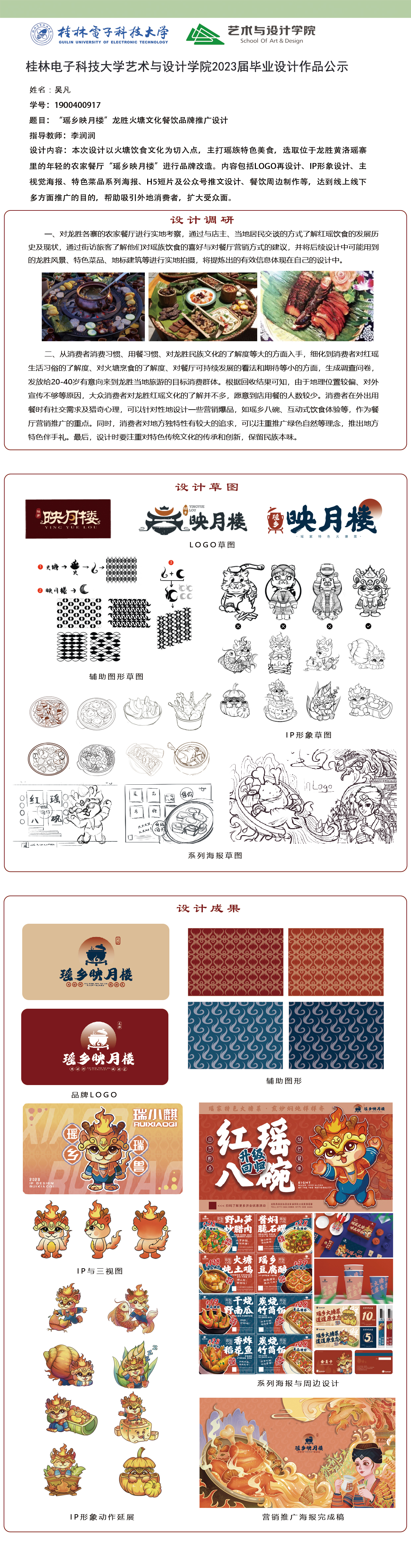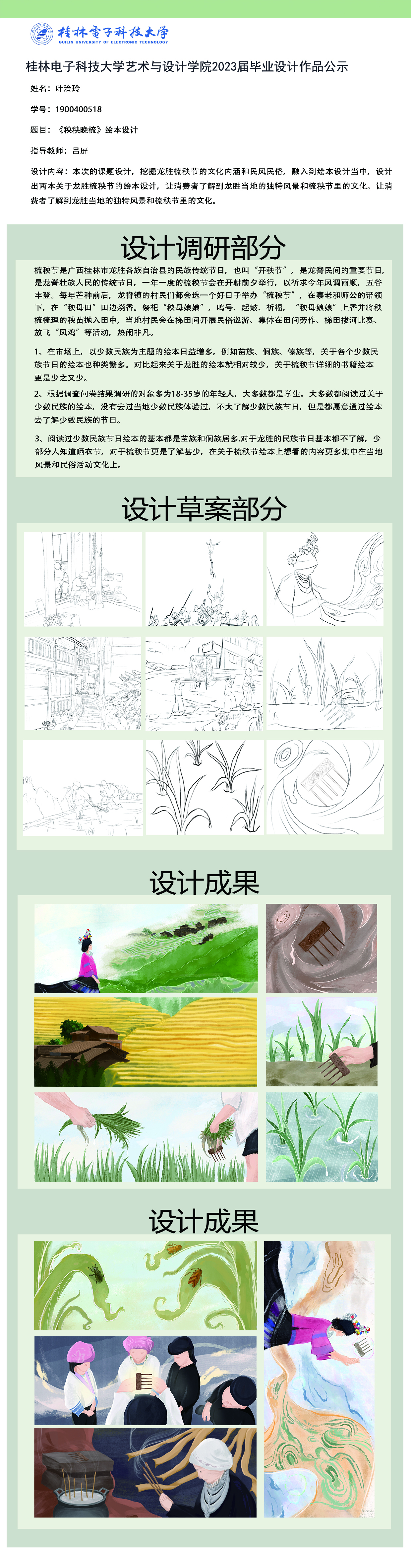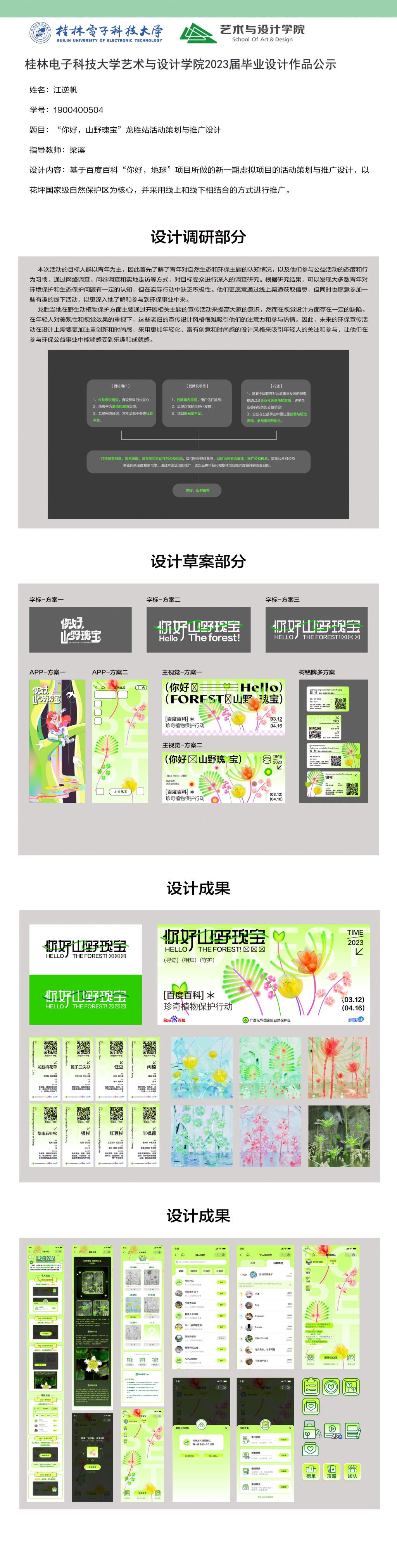 根据毕业设计管理文件规定,现将2023届视觉传达设计专业毕业设计作品进行公示。对所公示的作品如有疑议,请实名举证。公示期为三天(2023.04.20-2023.04.22)。作品公示期间的意见反馈邮箱:4575145@qq.com,联系电话:18677370501。